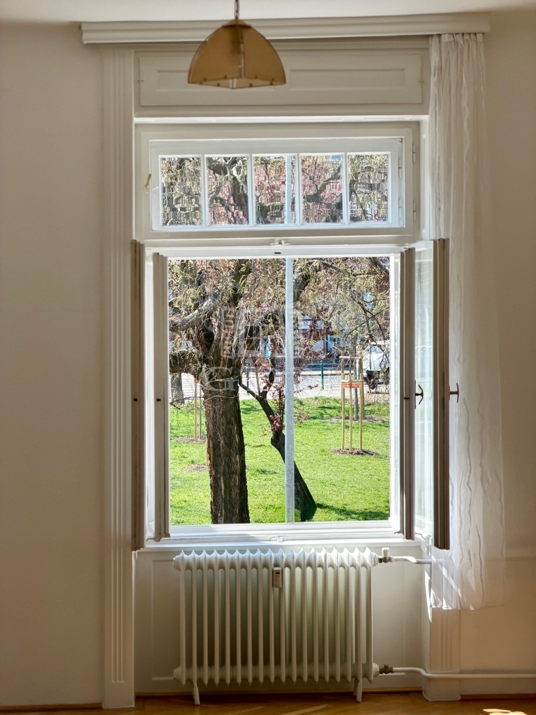 A lakás felújításon esett át, ahol igyekeztek meghagyni a "nagypolgári" lakások báját.
