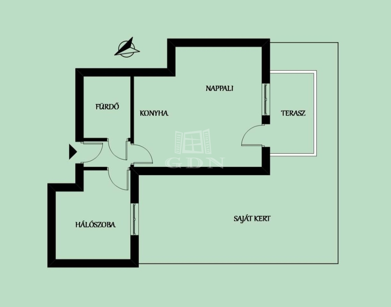 - Praktikus elrendezés: nappali + külön hálószoba