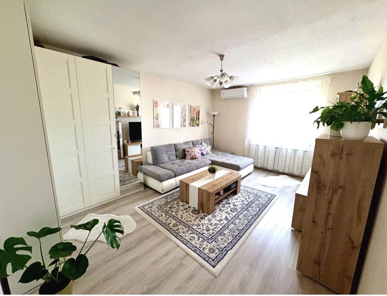 A 49 m²-es, 1 + 1 félszobás ingatlan egy 3 emeletes társasház legfelső szintjén helyezkedik el (lift nincs). A lakás elosztása praktikus: az előszobából külön nyílnak a helyiségek, a nappali az utcára, míg a hálószoba a nyugodt, belső kertre néz. A terek világosak, kellemes hangulatot biztosítanak.