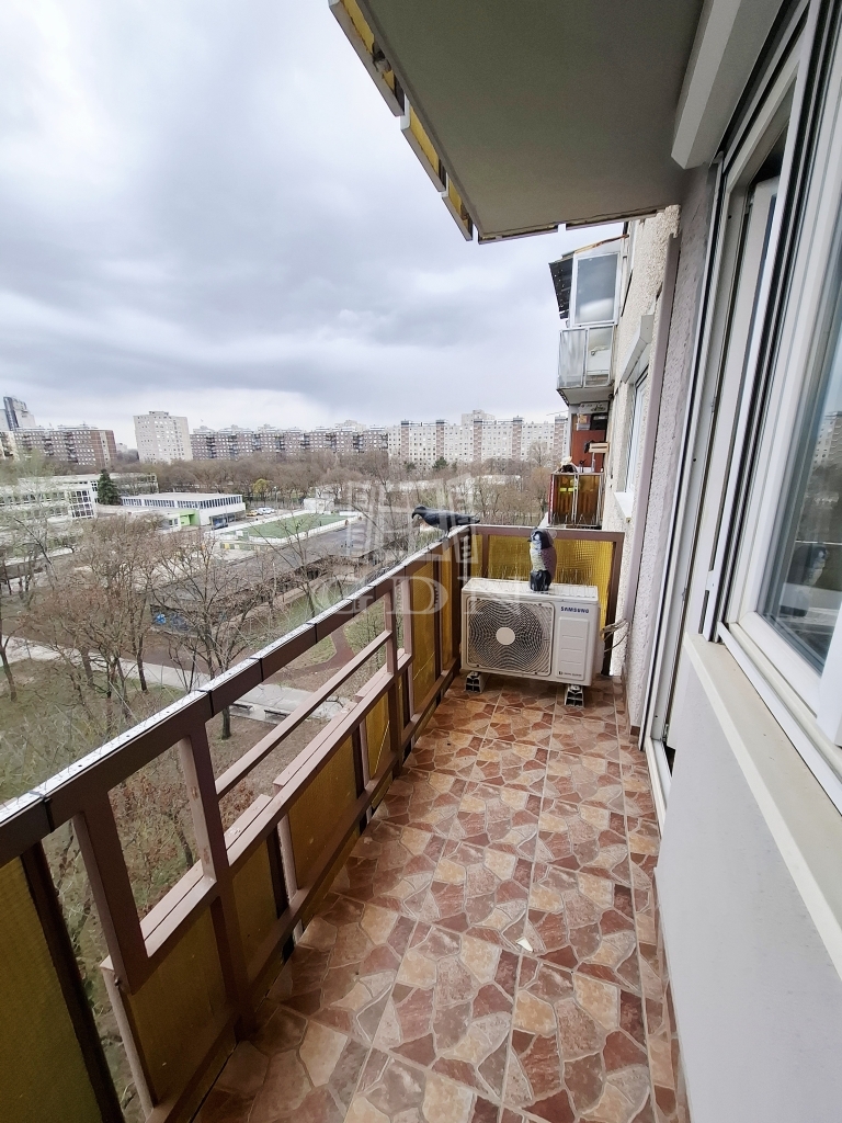 Eladó a XV. kerületben, Újpalotán, a Pólus Center közelében egy 7 emeletes épület 6. emeletén található, 35 m²-es, erkélyes, amerikai konyhás nappali + hálószobás, Generál felújított panellakás.