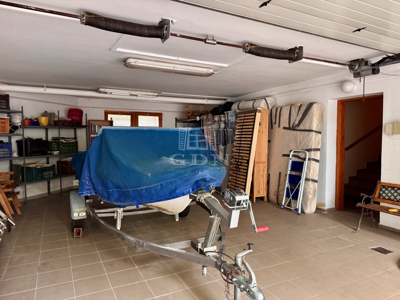 -Pince: közlekedő+lépcsőház(10,23m2), garázs(49,56m2), kazánház+tároló(12,54m2), tároló(5,28m2).