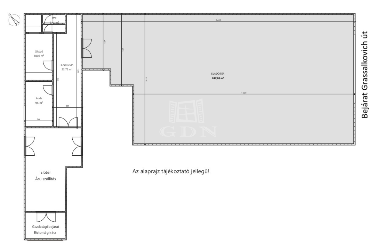 - üzlethelyiség az utcafrontról 242 m2,