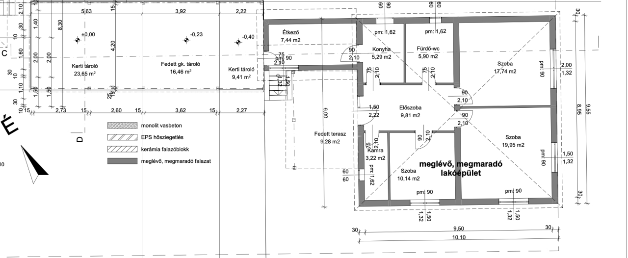 A telken található még, egy 16,5 nm-es fedett gépkocsi beálló +33 nm-es fedett kerti tároló.