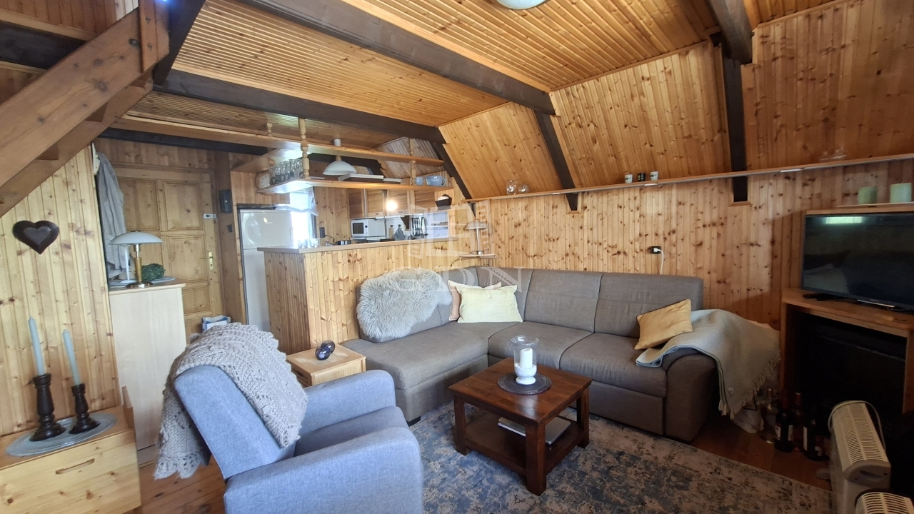 • Hangulatos alpesi stílusú, könnyűszerkezetes ház, stabil beton alappal