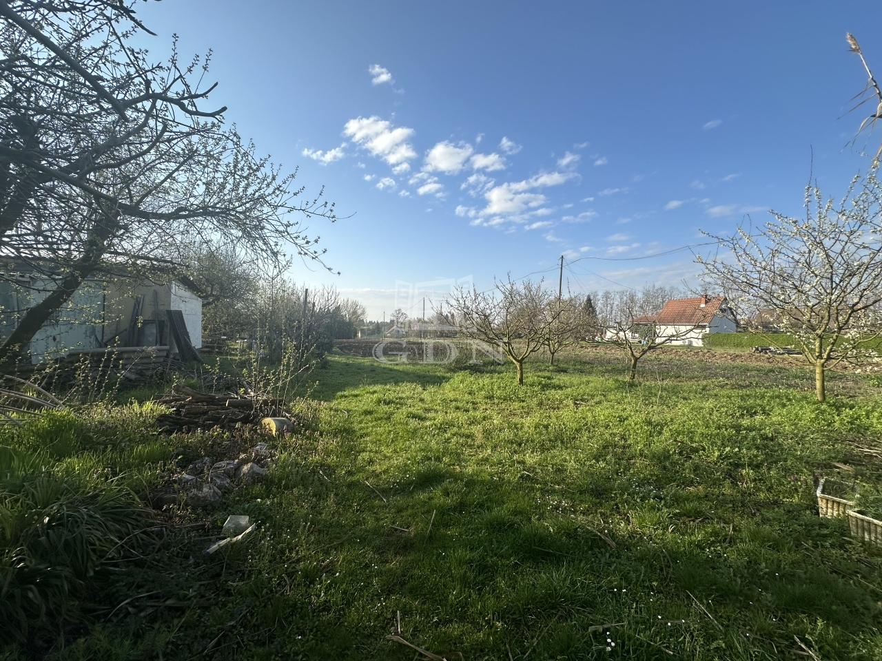 A gondozott területen gyümölcsfák és szőlőtőkék, valamint egy kis 12 m2-es kerti felépítmény található.