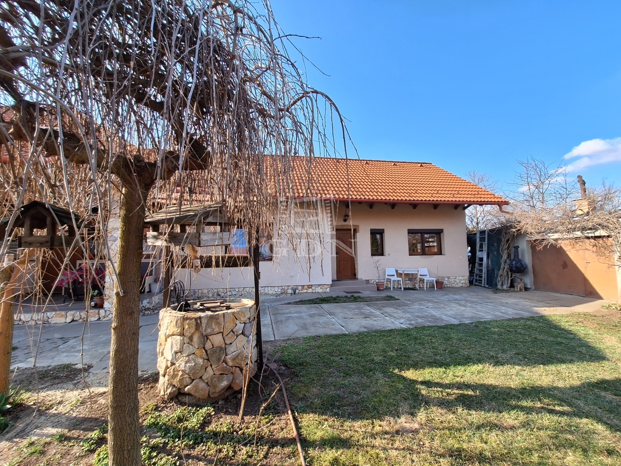 A 1079 m²-es, körbekerített telek gondozott, parkosított, amely ideális: