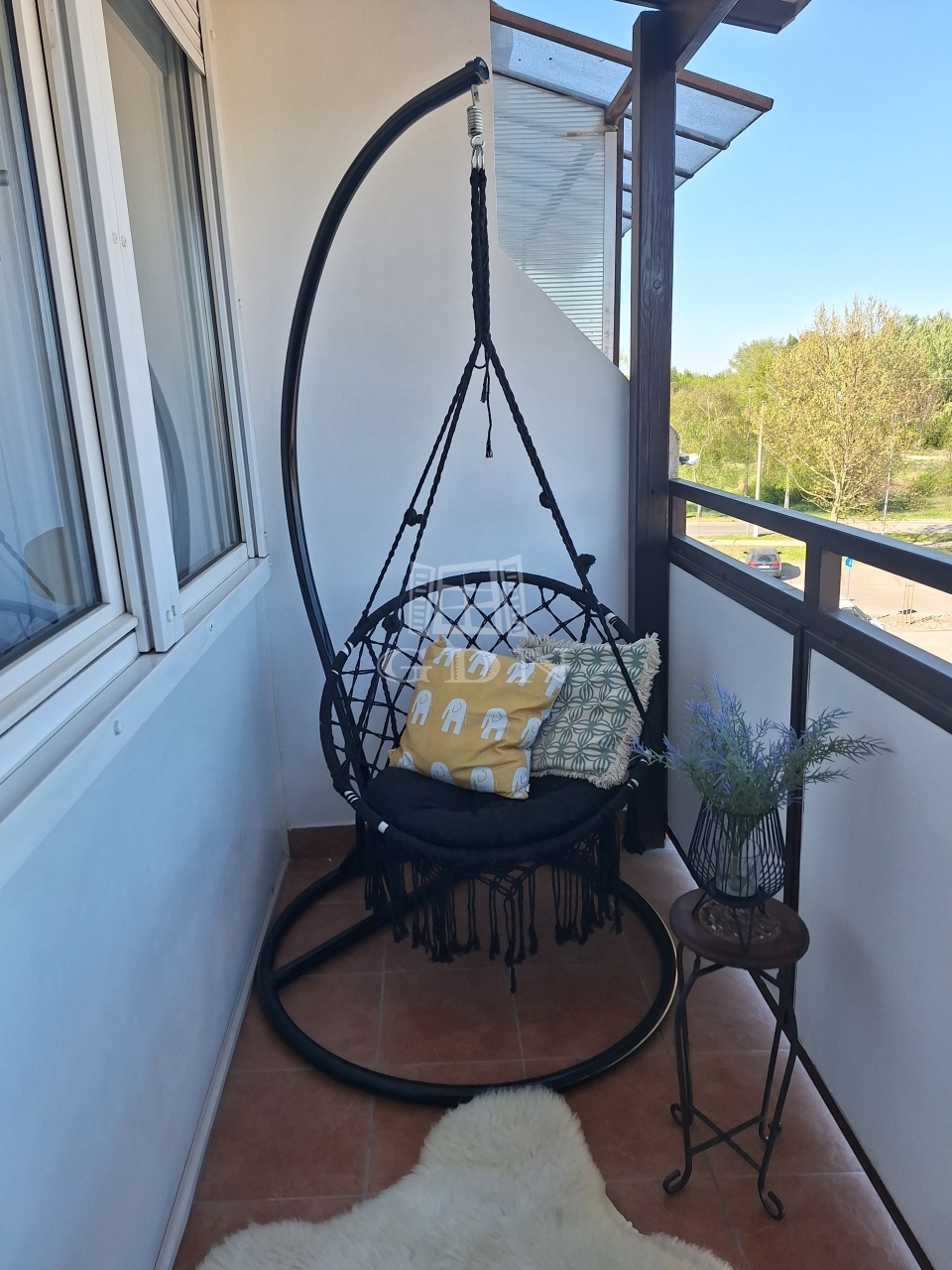 A 38 m²-es ingatlan a harmadik emeleten helyezkedik el, így a 3 m²-es erkélyről gyönyörű panorámás kilátás tárul elénk.