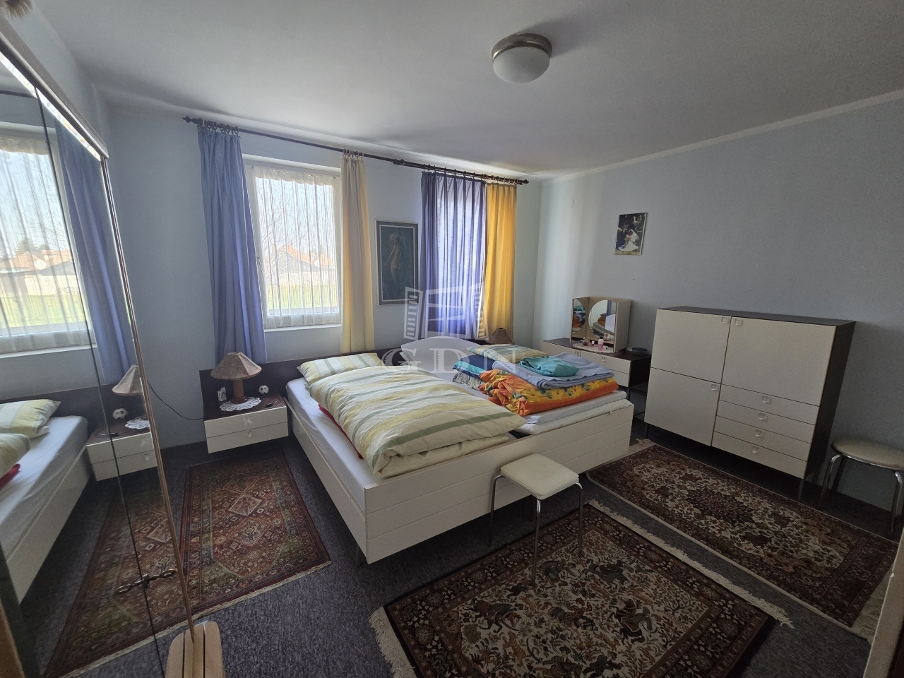 A garázsból közvetlen kijárat nyílik az udvarra, de a nappaliból is könnyedén megközelíthető a kert, ami különösen kényelmes megoldás a mindennapok során. Az ingatlan riasztórendszerrel is felszerelt.