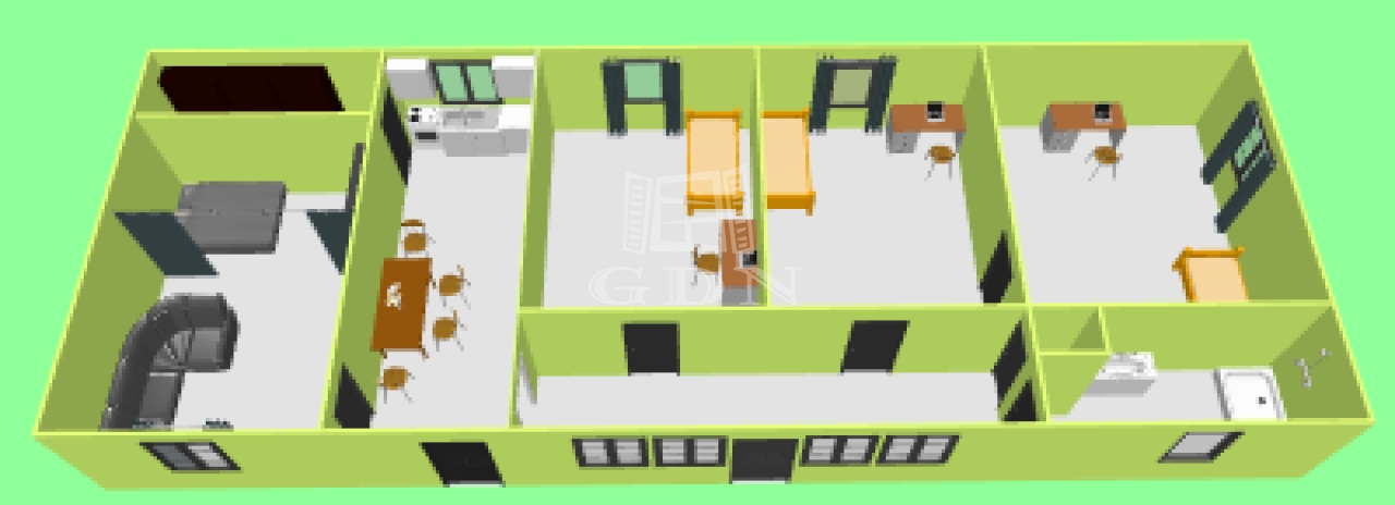 A 120 négyzetméter 4 szobára, konyhára, fürdőszobára, külön WC-re, kamrára valamint tágas előtérre oszlik. A 412 négyzetméteres telek gondozott, parkosított, igény szerint garázs is kialakítható rajta. Az udvaron található még, egy nagy méretű, fedett terasz valamint kerti tároló.