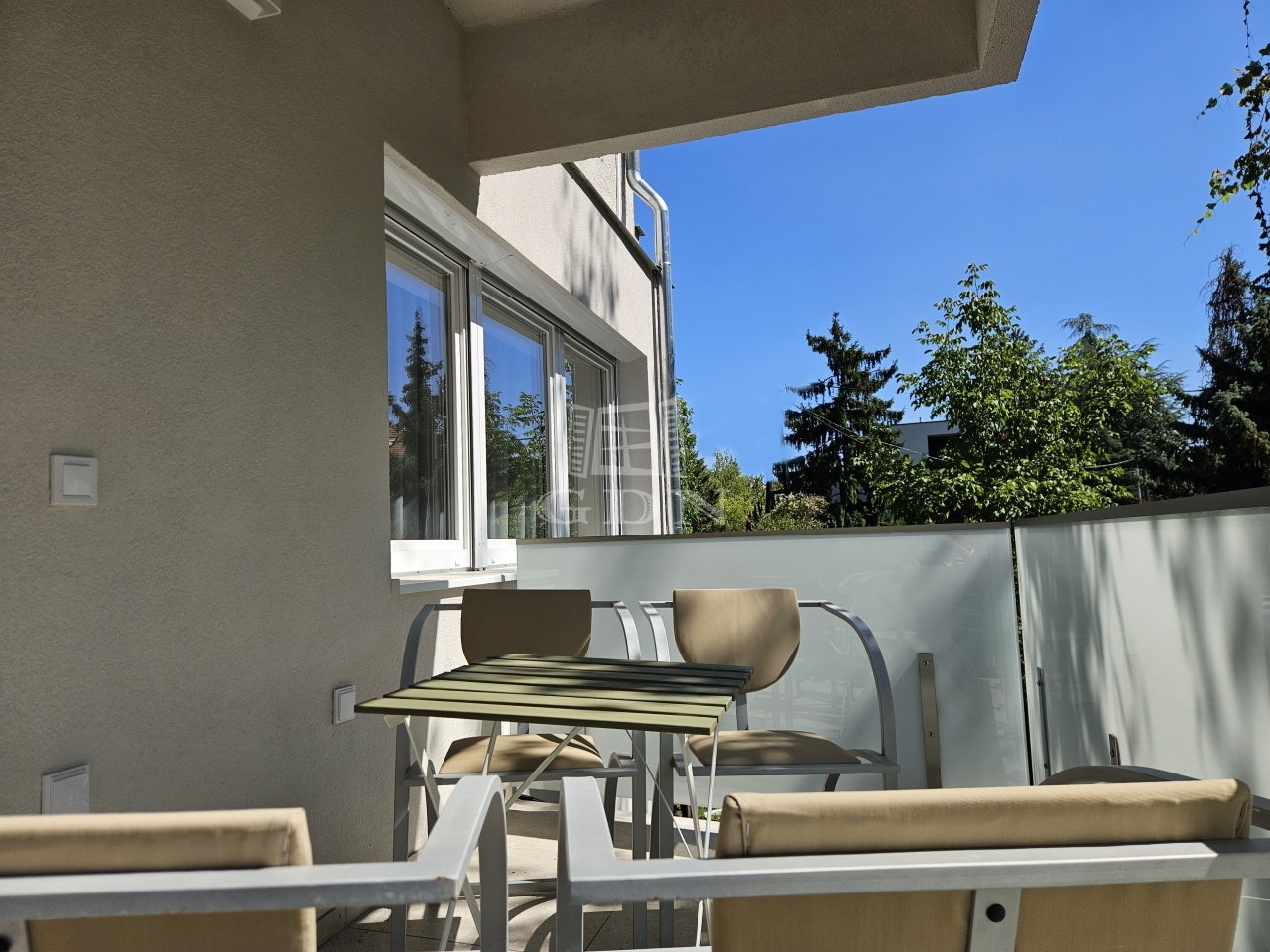Bahaus stílus jegyekben újra gondolt lakás egyedi atmoszférával rendelkezik, ami csendes parkosított zöld környezetben található.