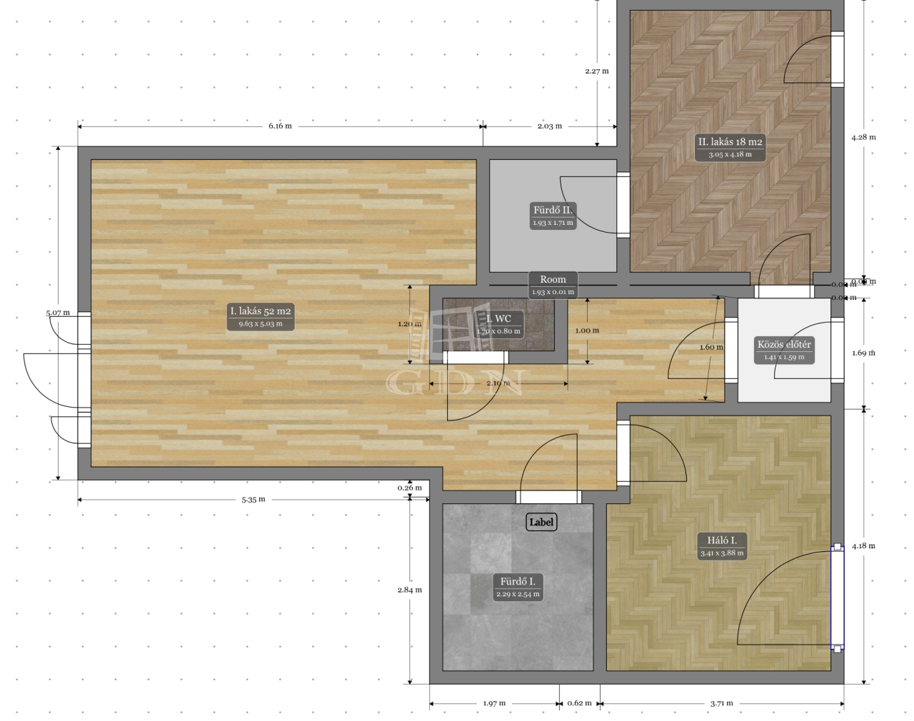 Az ingatlan jelenleg két különálló lakóegységből áll, de igény esetén átadásig visszaalakítjuk nappali + 2 hálós lakássá.