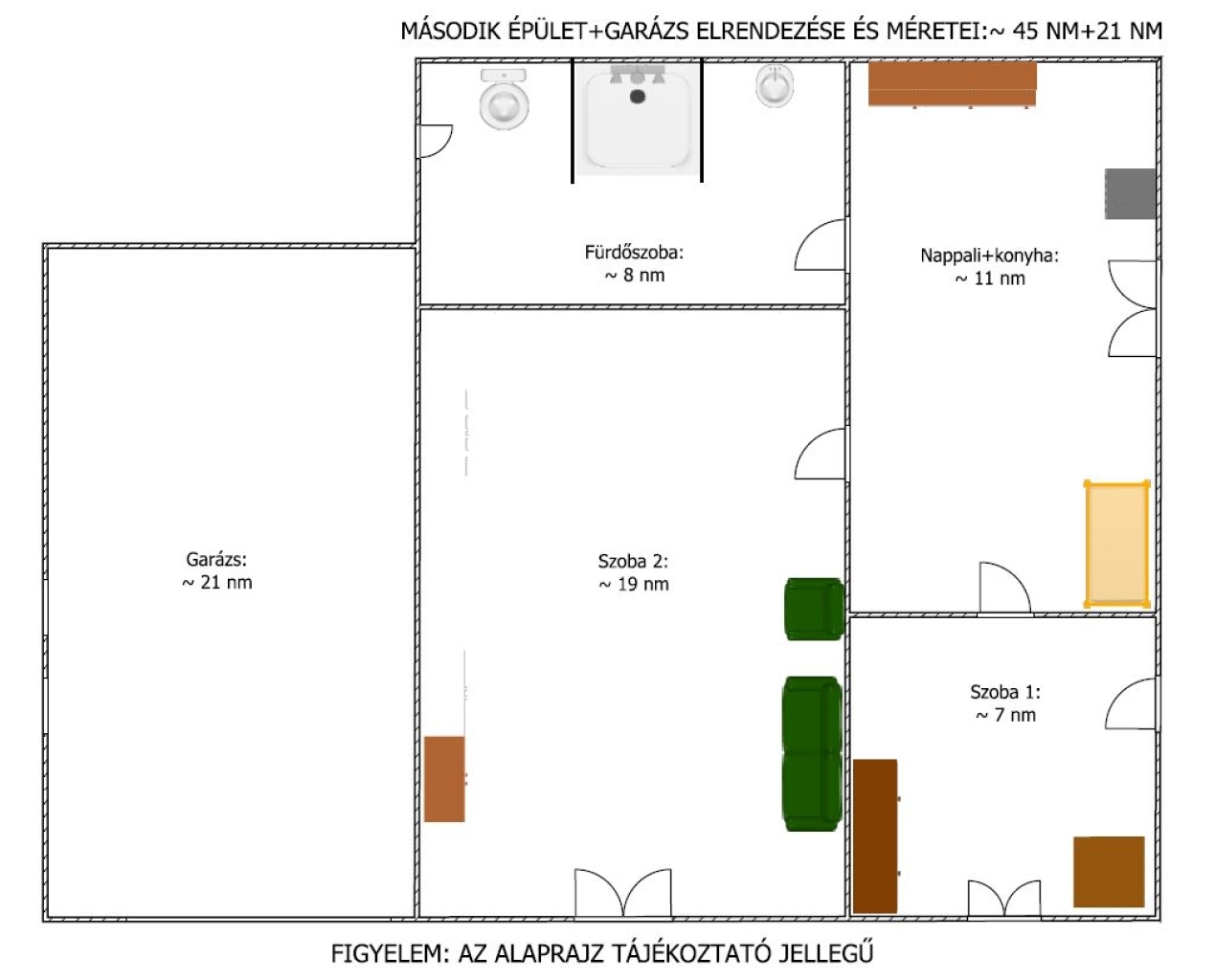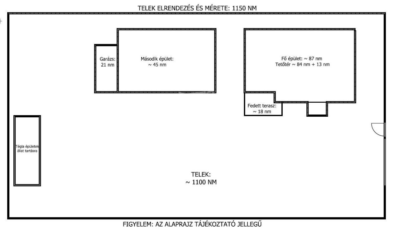 A főépület (földszint) alapterülete 87nm, melyben található: