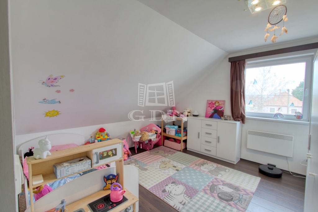A kétszintes épület 30-as Porotherm téglából épült, beton födémmel, Bramac betoncserép héjalással. Homlokzatán 10 cm-es dryvit szigetelés, a tető alatt 30 cm kőzetgyapot szigetelés található. Az ingatlan elektromos hálózata 3×20 A erősségű. A telek 815 m2-es, összközműves, rajta fúrt kút, szaletli, dupla garázs, parkosított kertrész és térkövezett parkolók találhatók.