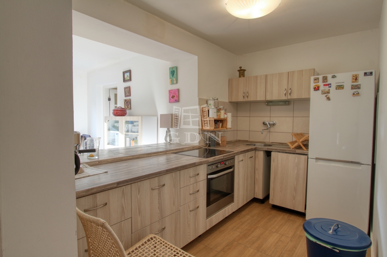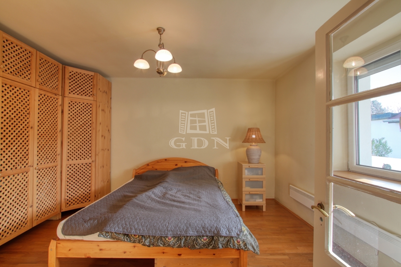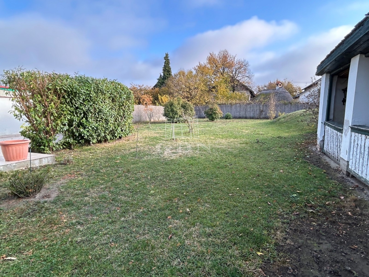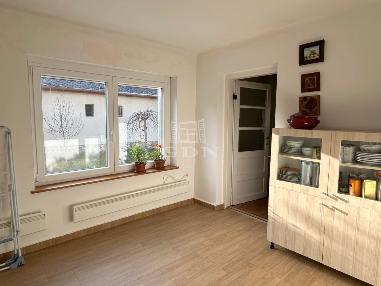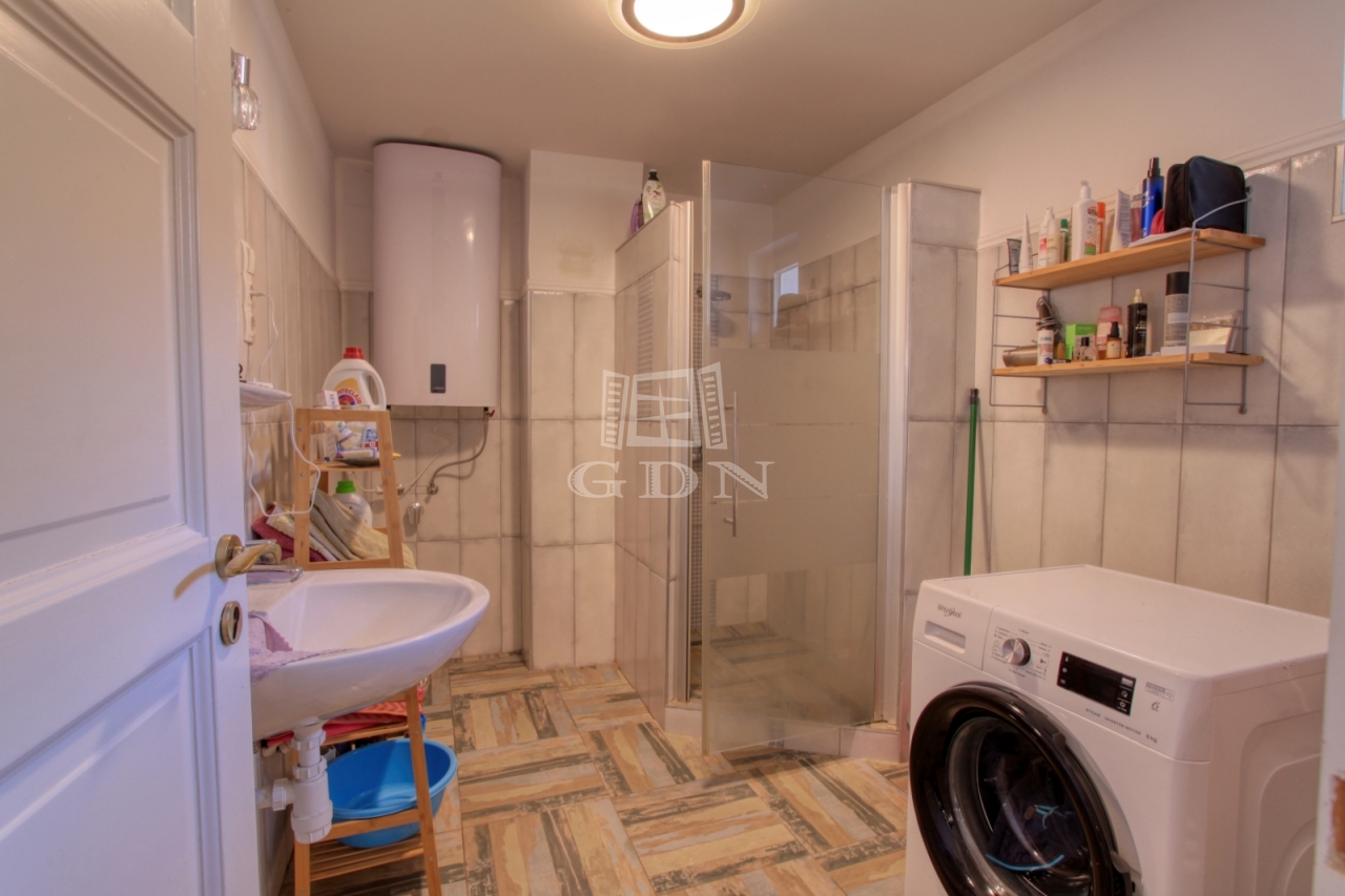 A ház 37 m2-es nappali-étkező, előszoba-étkező, konyha, fürdőszoba, wc, közlekedő helyiségekből áll. További hálószoba leválasztással kialakítható, illetve a verandáról nyíló jelenleg tároló funkciót ellátó helyiség is alkalmas lehet szoba kialakítására. Az épülethez csatlakozik egy tároló és egy 20 m2-es terasz, illetve a ház mellett található egy külön épület, fedett kiülő és pince. A kert gondozott, öntözése ásott kútból lehetséges. Ár: 79 MFt