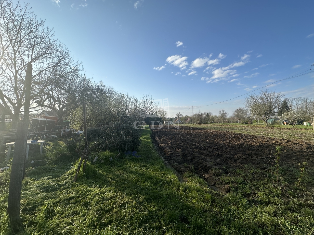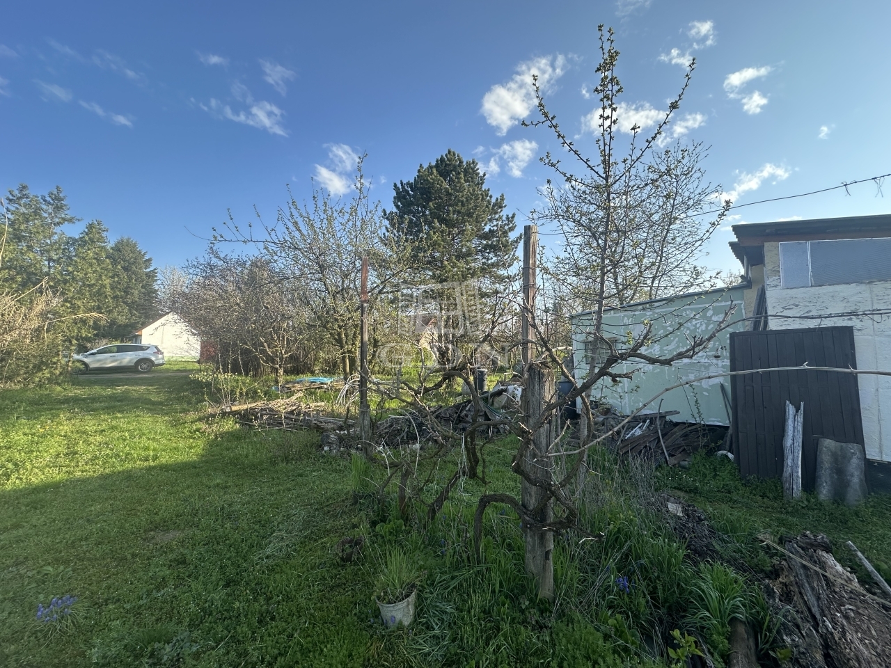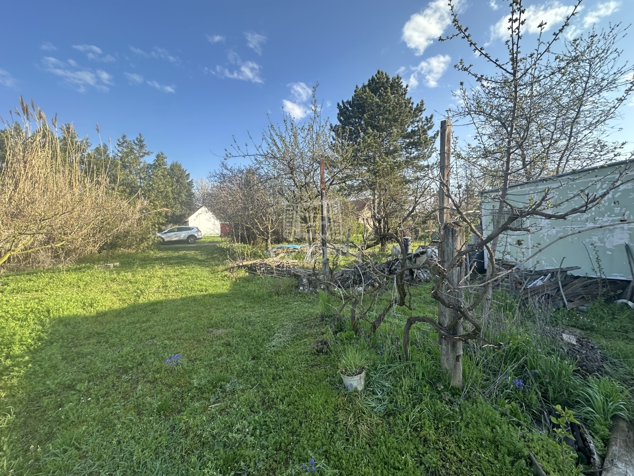 A gondozott területen gyümölcsfák és szőlőtőkék, valamint egy kis 12 m2-es kerti könnyűszerkezetes felépítmény található.