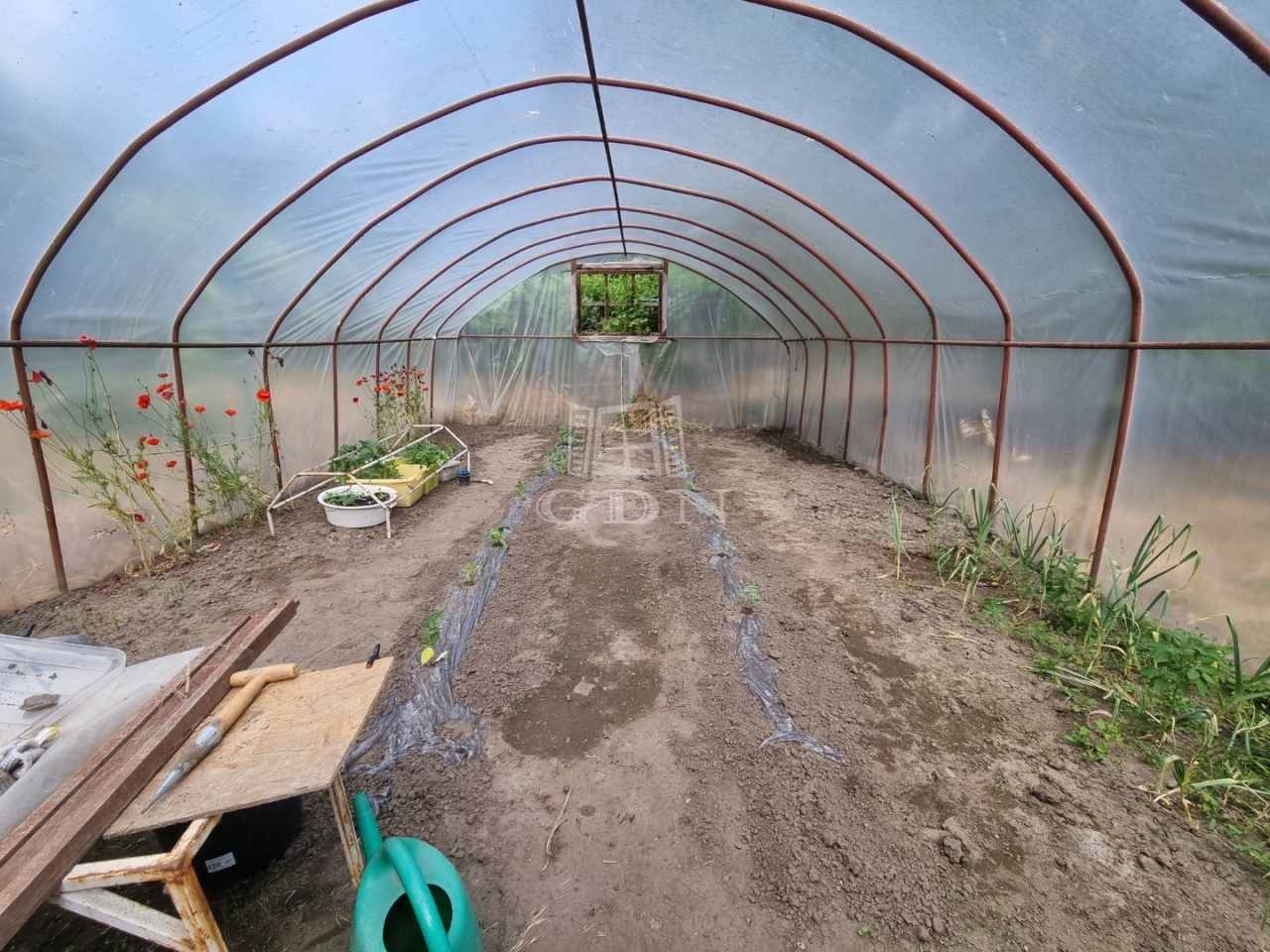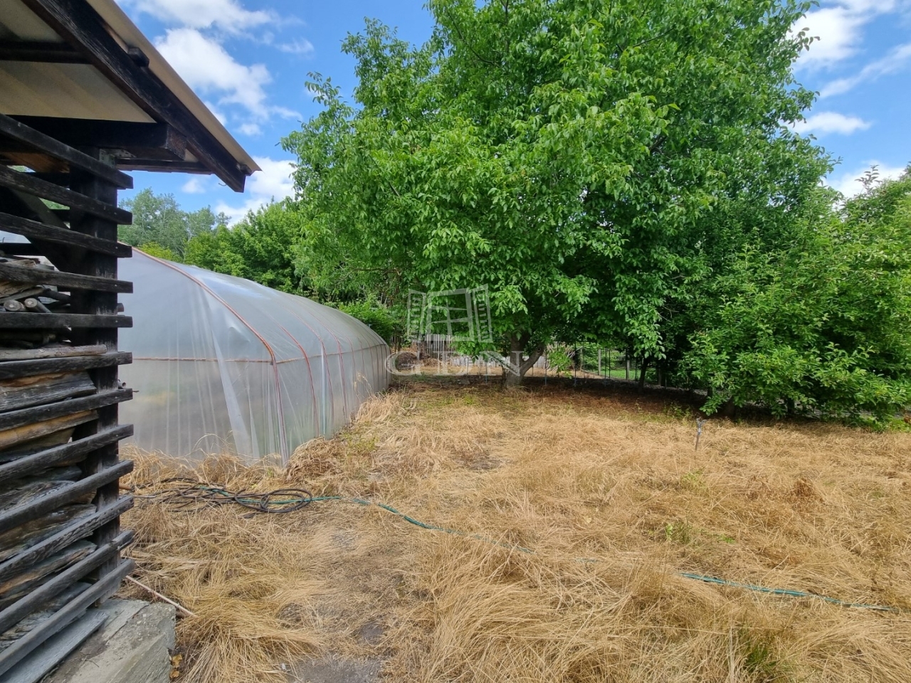 A kert kiválóan alkalmas pihenésre, illetve családi vagy baráti összejövetelek tartására. A telek hátsó része jelenleg nem művelt, veteményesnek, gyümölcsösnek kiváló, található itt egy fóliasátor is. A házhoz széles kapu, 2 állásos garázs, előtte nagyméretű kocsibeálló tartozik, mely több autó befogadására is alkalmas. A ház előtti rész rendezett.