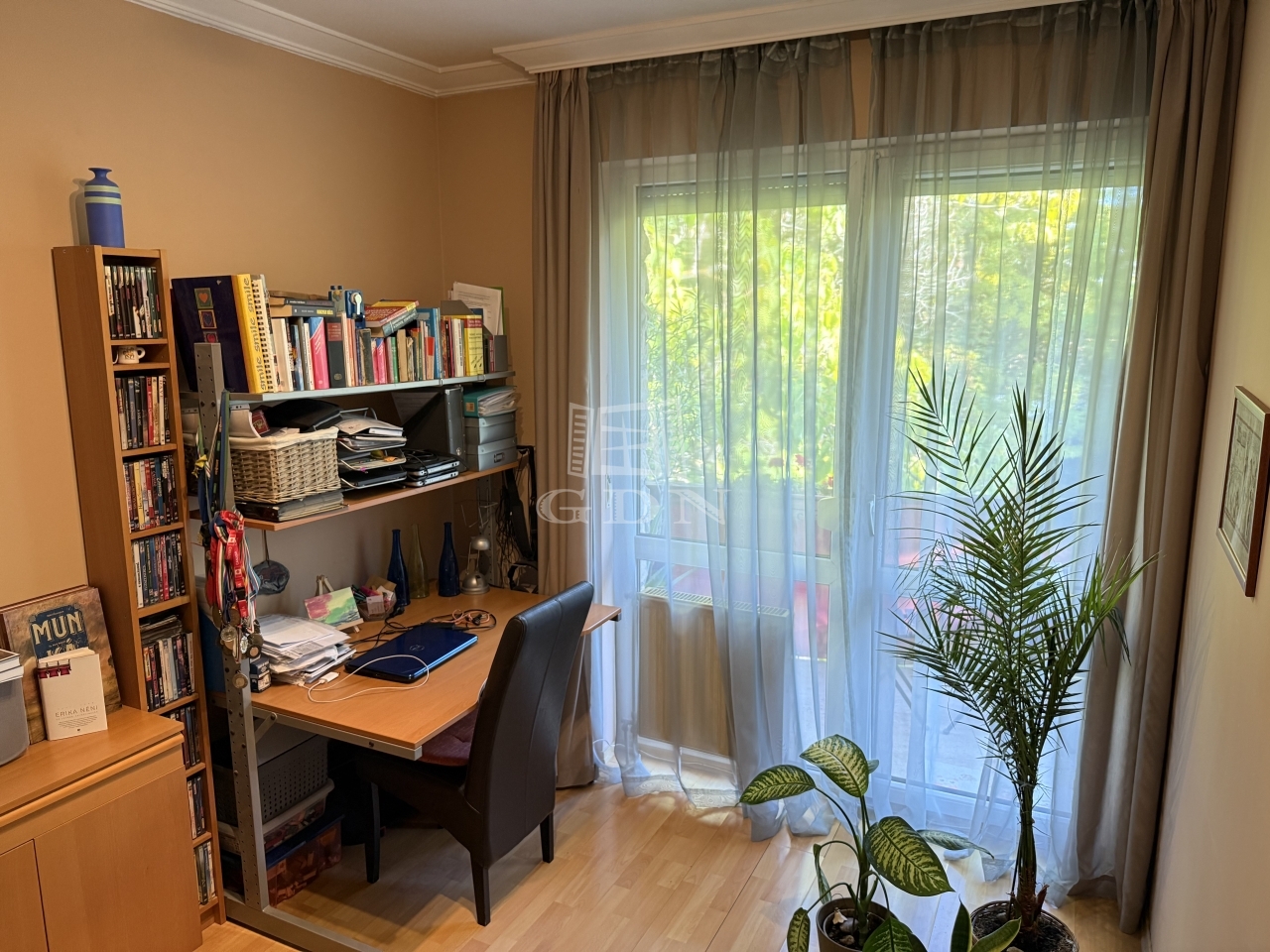 Az ingatlan 2004-ben épült, mindössze öt lakásos társasházban található, első emeleti, 81 m²-es, kifogástalan állapotú, amerikai konyhás nappalival és három hálószobával. A jól átgondolt elrendezés mellett két erkély (az egyik amerikai konyhás nappaliból nyílik, a másik pedig az egyik halószobából), ablakos fürdőszoba, külön vendég-WC, gardrób, két teremgarázs-hely és 7 m²-es tároló is tartozik hozzá.