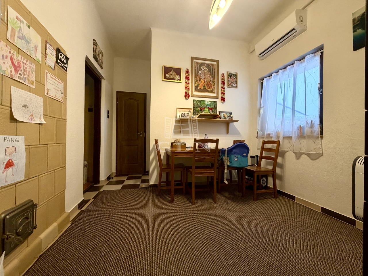 A kisházban radiátoros hőleadók vannak felszerelve, és külön gázcirkó biztosítja az ellátást.