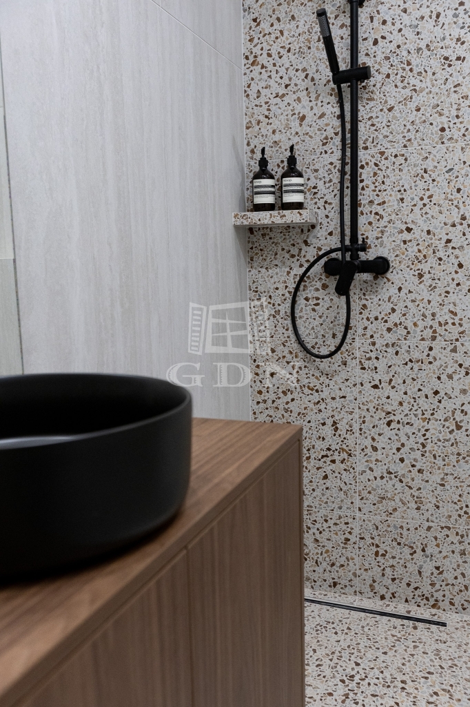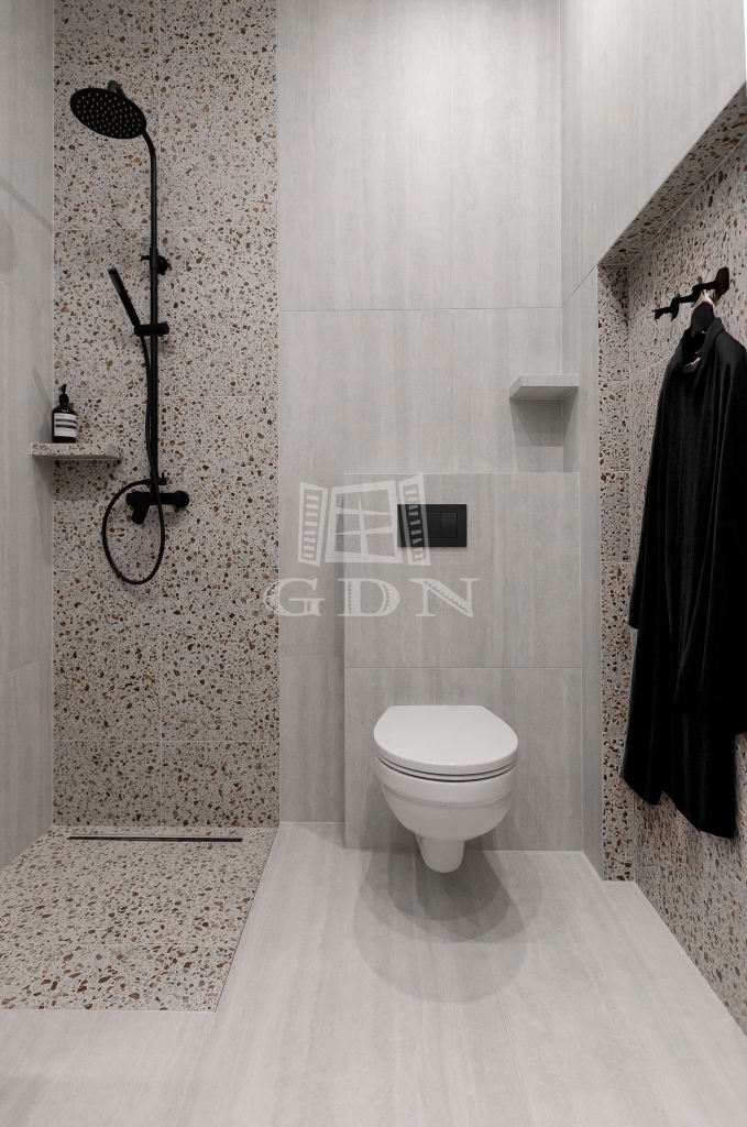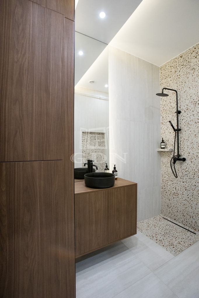 • modern, zuhanyzós fürdőszoba