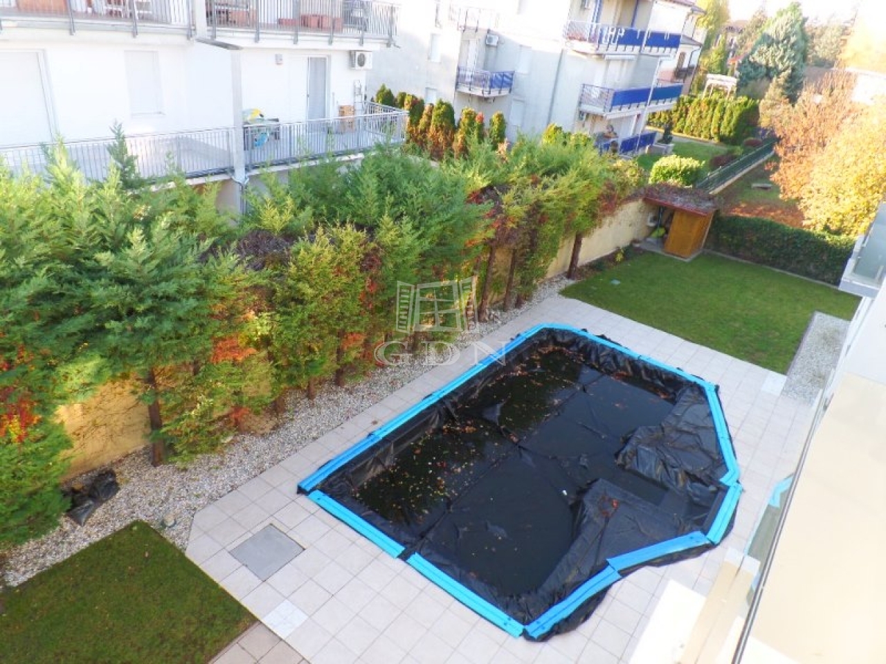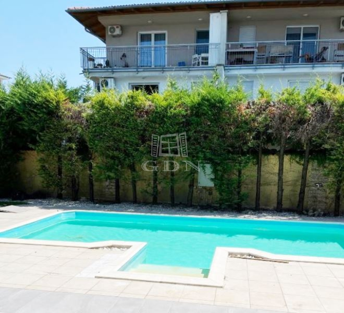 A 6 lakásos társas ház rendezett, közös használatú udvarán található feszített víztükrű medence, és napozó terasz. A lakásokhoz 2 saját autóbeálló tartozik, melyek megvásárlása kötelező, ára 2x4.000.000,- Ft.