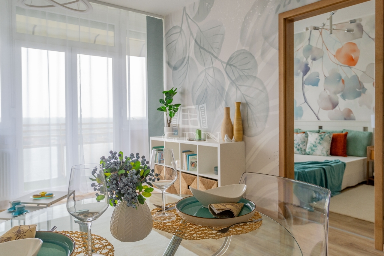 Az átgondolt alaprajzi módosításnak köszönhetően a terek jól kihasználtak és élhetőek. A keleti tájolásnak és a sok ablaknak köszönhetően a lakás rendkívül világos, ugyanakkor csendes. Az erkélyről szép, nyitott panoráma tárul elénk.