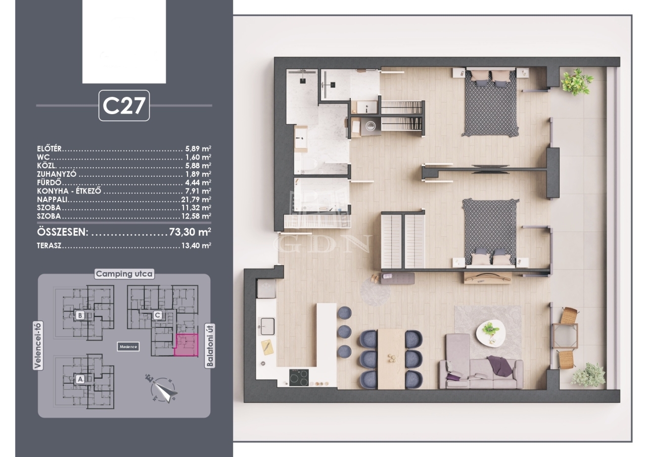 | 73 m2Alapterület | 3 Szoba |