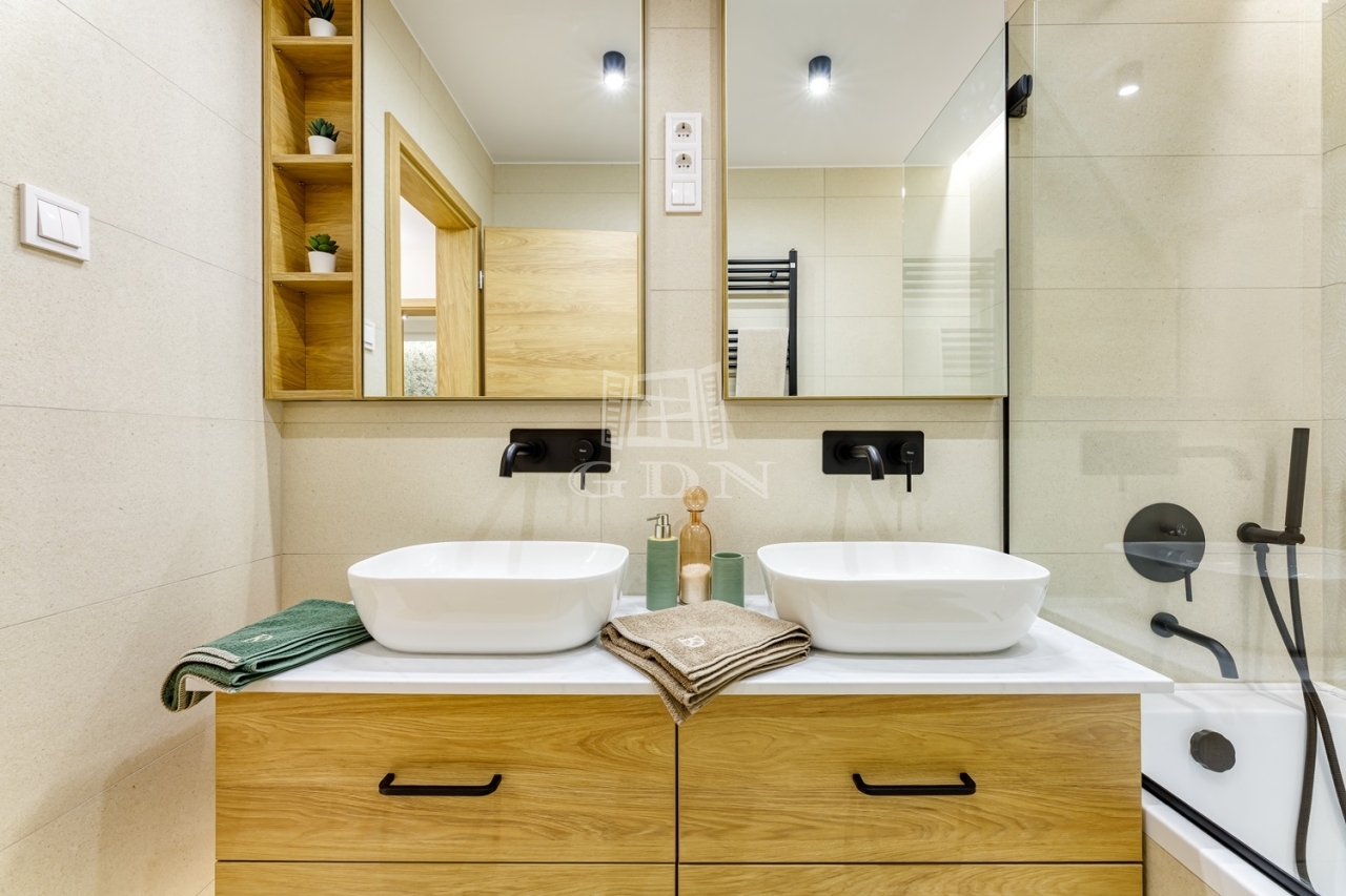 • Felső szinten: káddal felszerelt fürdő dupla mosdóval, külön WC