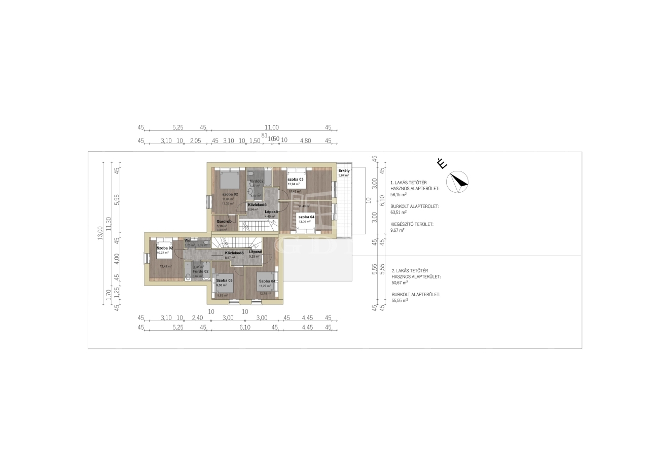 - 2 fürdőszoba + gardrób