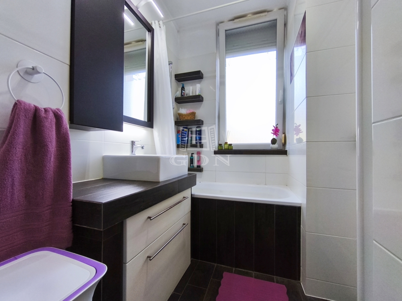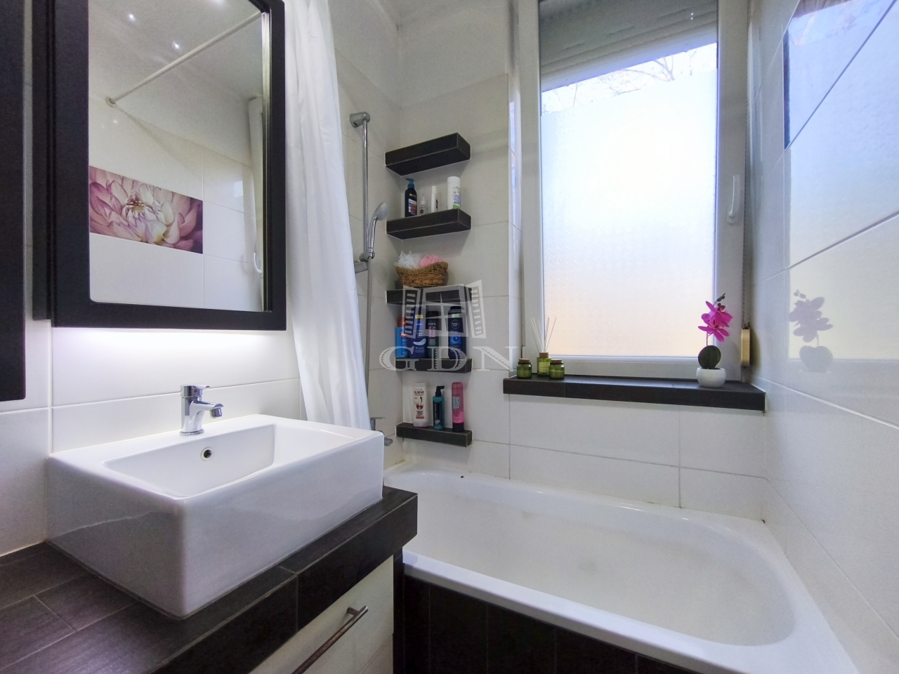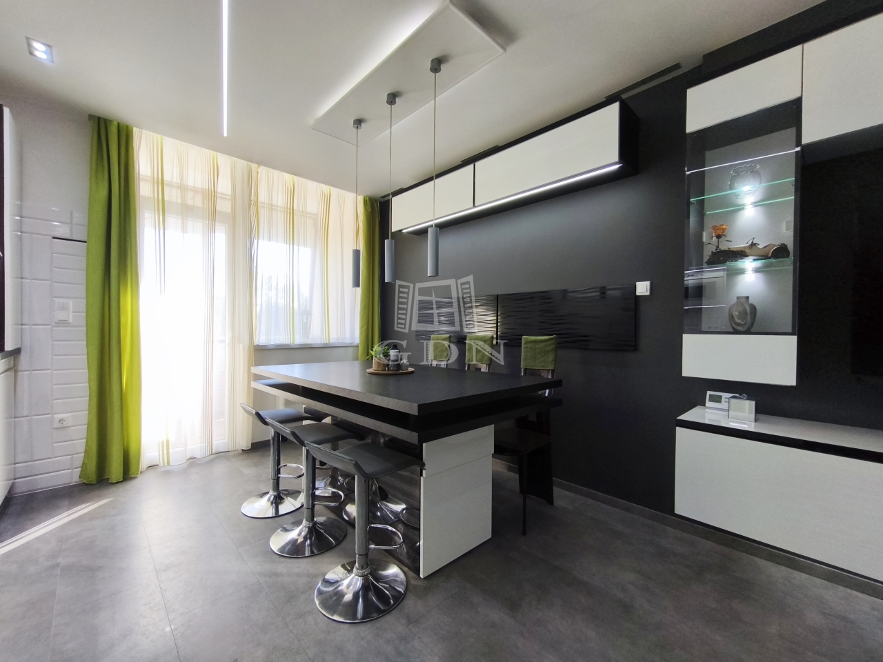 A gépesített, beépített konyha sütővel, hűtőszekrénnyel, mikrohullámú sütővel és kivezetett szagelszívóval felszerelt, így a lakás azonnal költözhető.