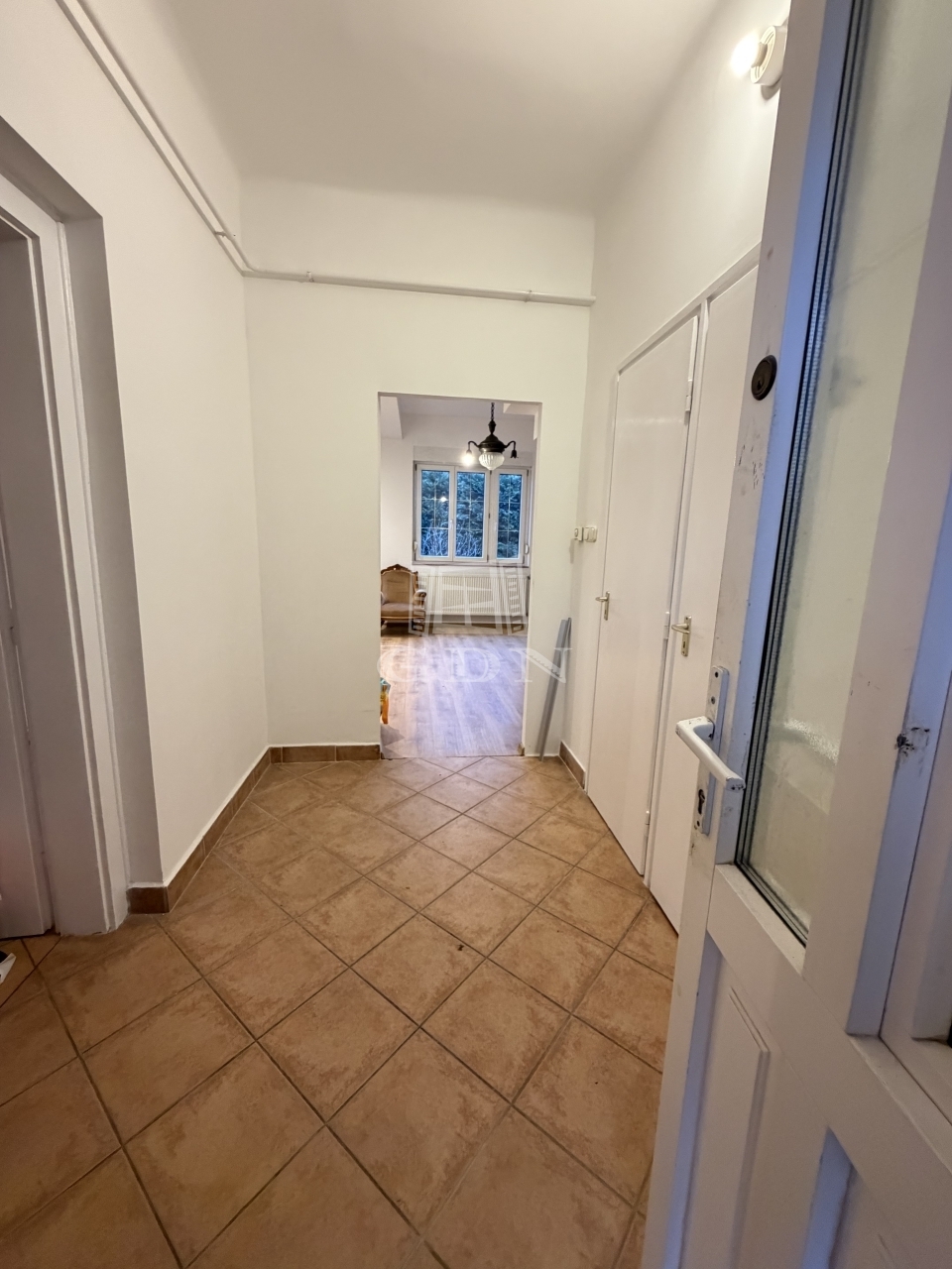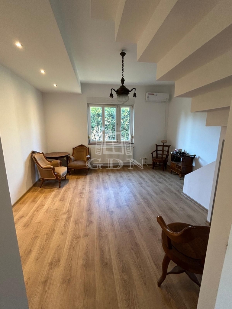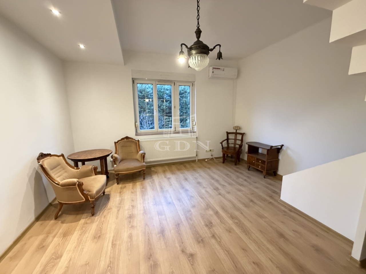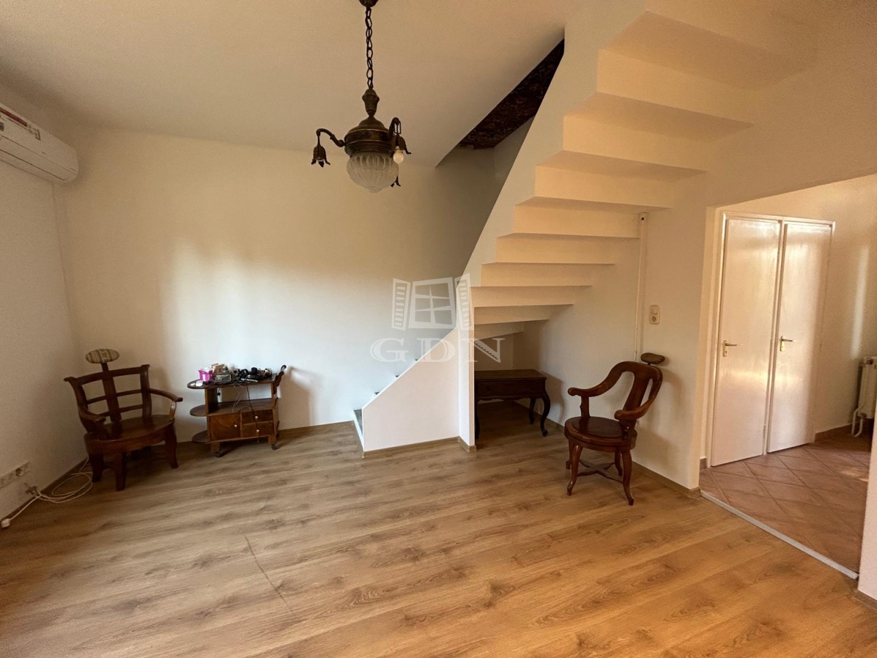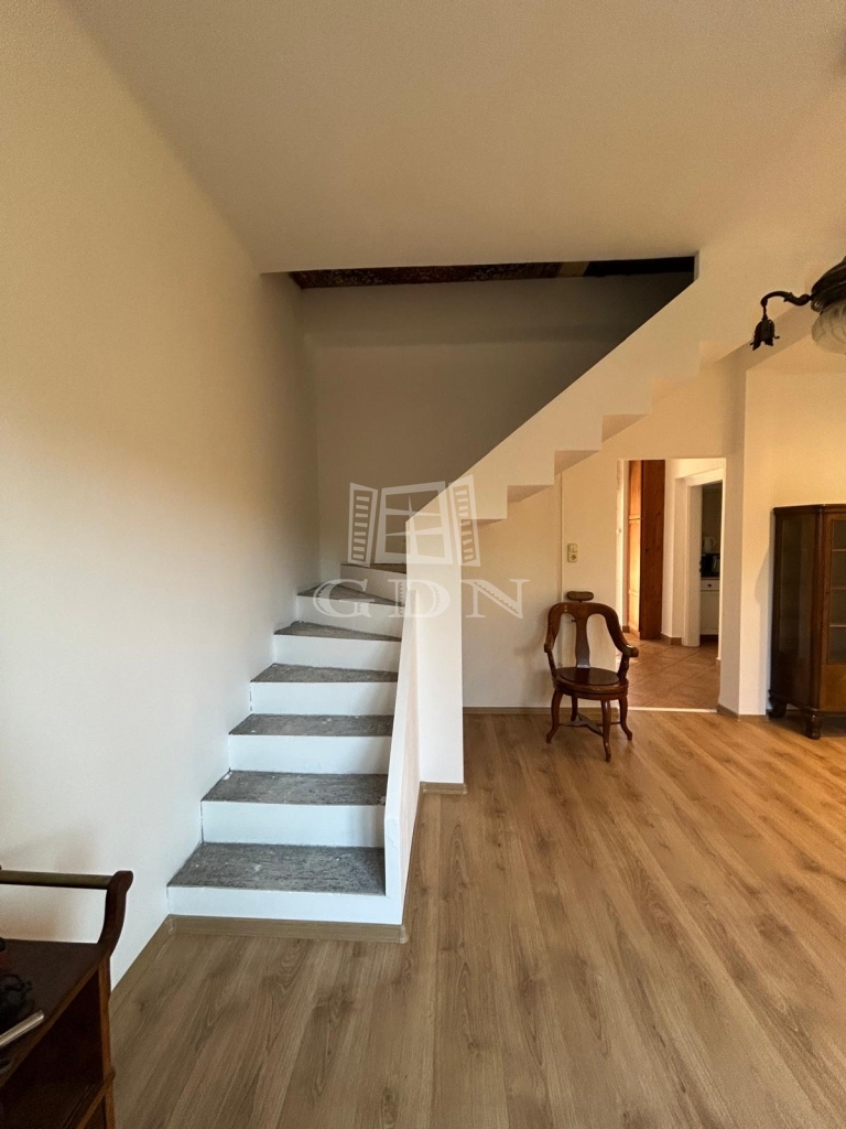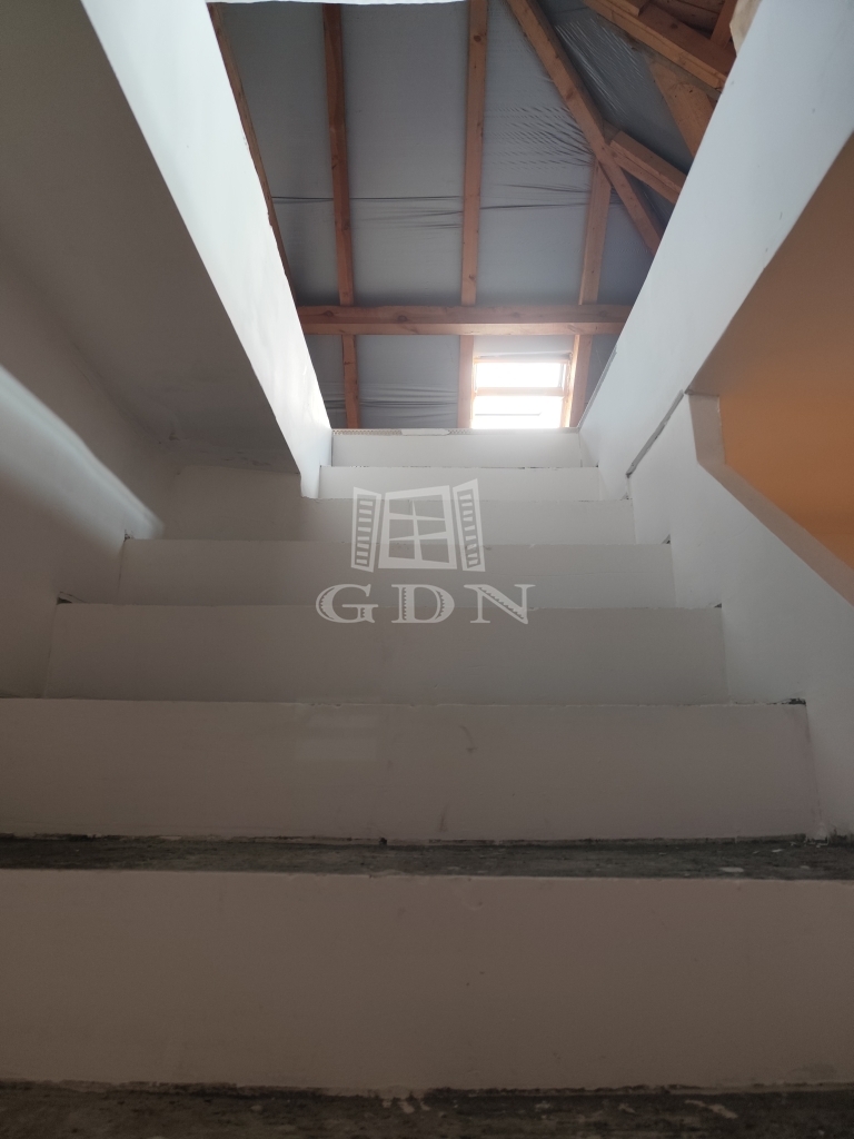 A földszinten egy tágas előszoba-közlekedőbe léphetünk be, innen nyílik egy világos nappali amelyben egy frissen kialakított modern lépcső vezet fel a tetőtérbe.