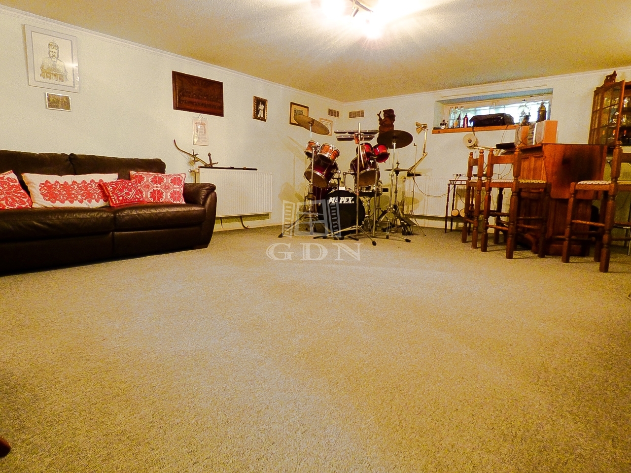 A szuterén szinten fűthető, dupla garázs, kazánház és mosókonyha, hobby szoba, kis szerelő műhely kapott helyet.