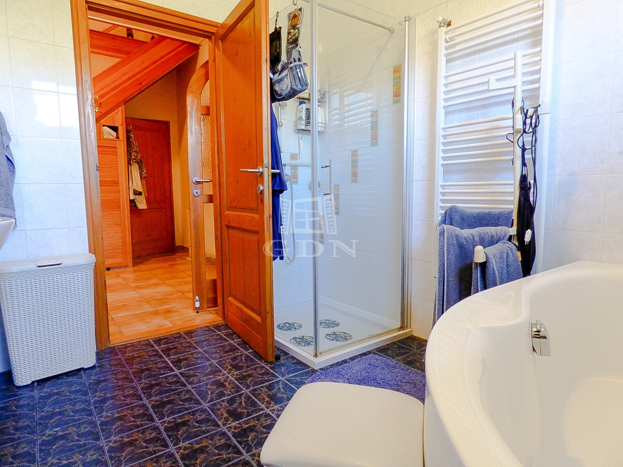 Az emeleten 2 db hálószoba, a nagyobb erkéllyel és gardróbbal (18 nm), fürdőszoba biztosítja a nyugodt pihenéshez szükséges környezetet padlófűtéssel.
