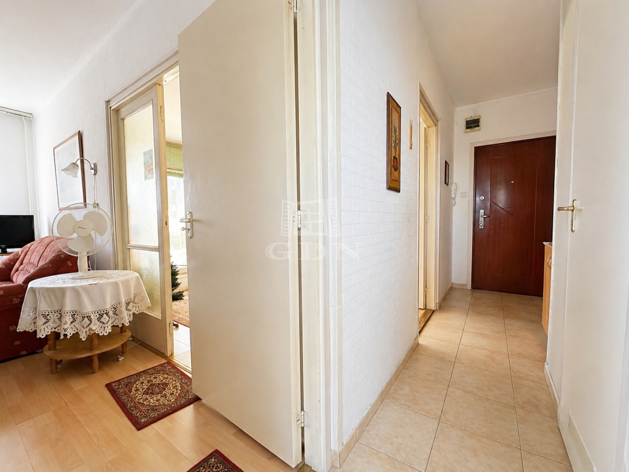 A lakás nyugati fekvésű, napos és világos, a konyha ablakos, így a természetes fény egész nap jelen van.