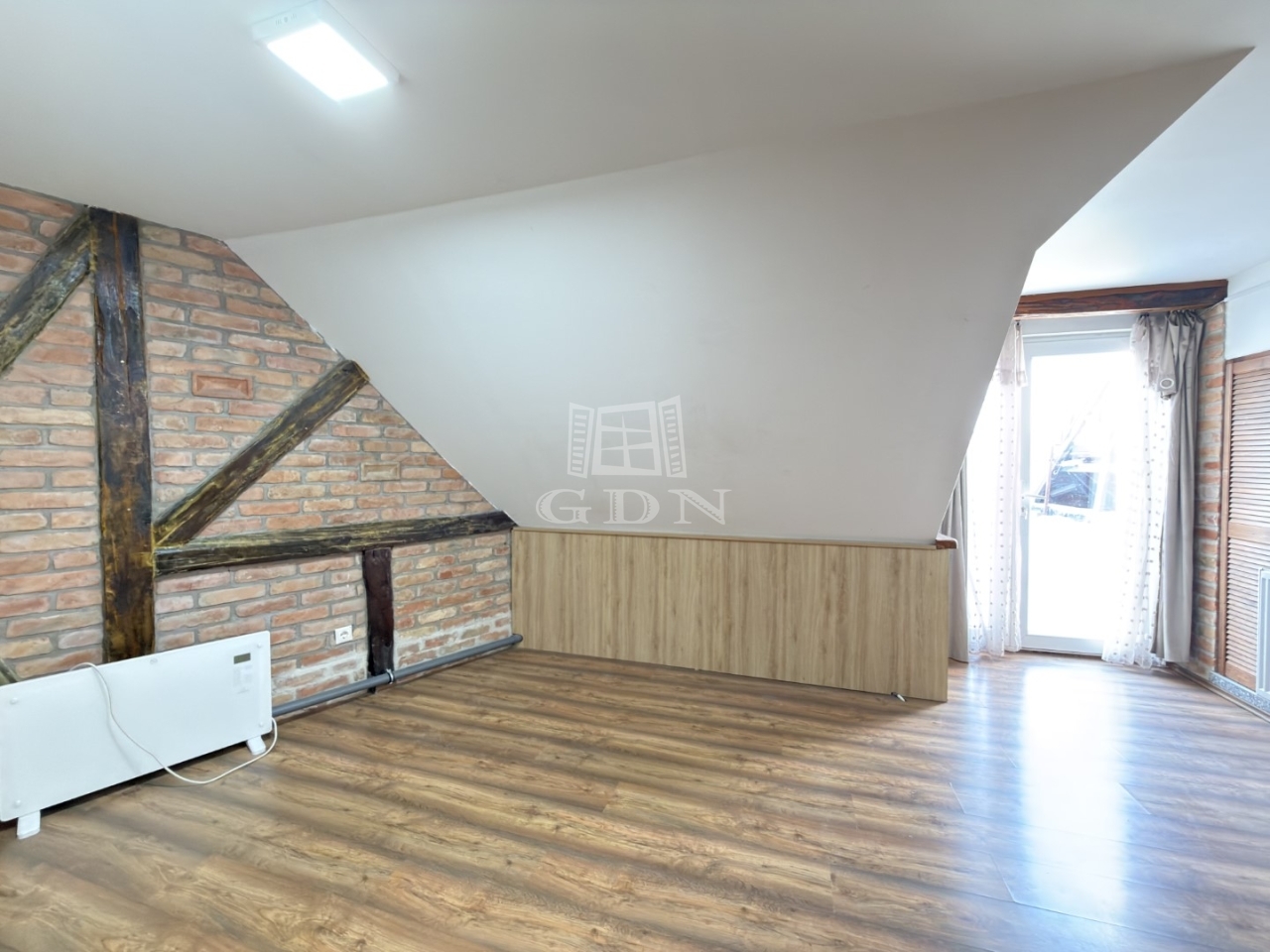 BL-004798. Jancsár utcai, helyi járatos buszmegálló közelében, 1 emeleti (tetőtér) amerikai konyhás nappali + 3 szoba elosztású, klimatizált téglalakás hosszútávra kiadó.