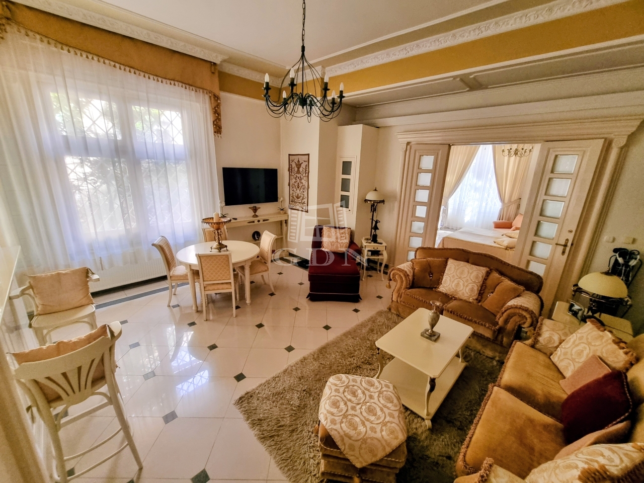 Az ingatlan a közelmúltban folyamatosan megújult, kényelmes, tágas terek, sok ablak, kertre néző kilátás, romantikus félkör erkély, elegáns megjelenés jellemzi. Fűtése gáz kombi cirkó, az ablakok hőszigetelt thermo, a háló klímával felszerelt, rezsije alacsony a gáz és elektromos számlája:19.500 ft/hó.