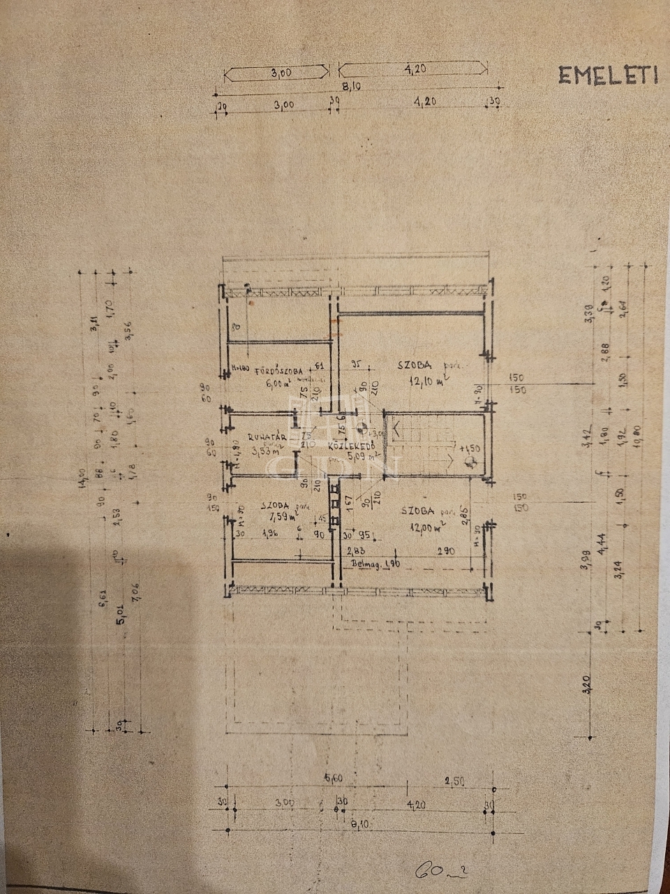 - tégla építésű, szigetelt (12 cm), a padlástér is,