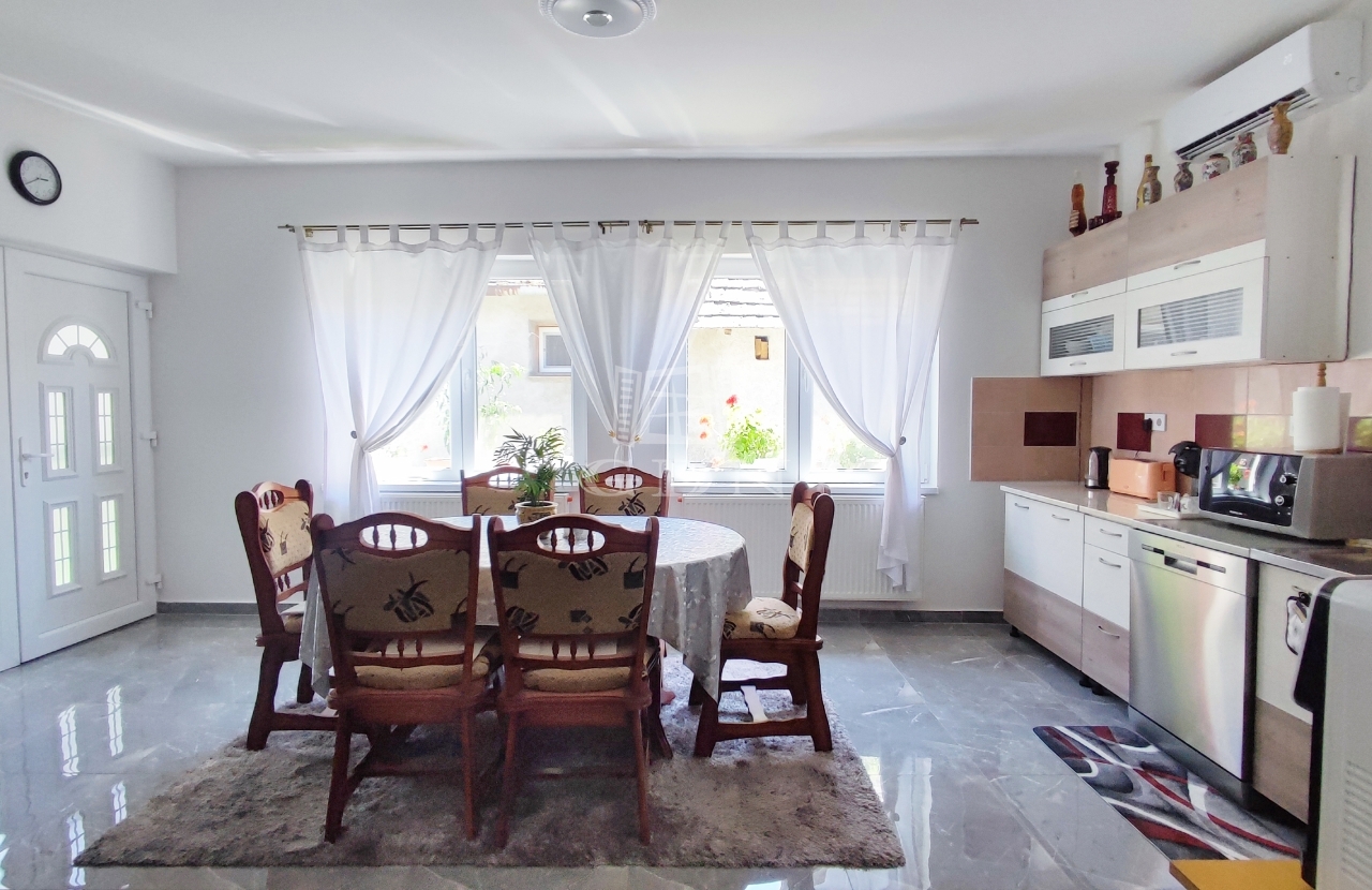 A 112 m²-es ház három kényelmes, világos szobával várja új lakóit. Ami igazán különlegessé teszi, hogy két konyhája, két fürdője és két külön WC-je van – így akár több generáció is békésen együtt élhet, vagy kialakítható benne egy külön vendégrész is.