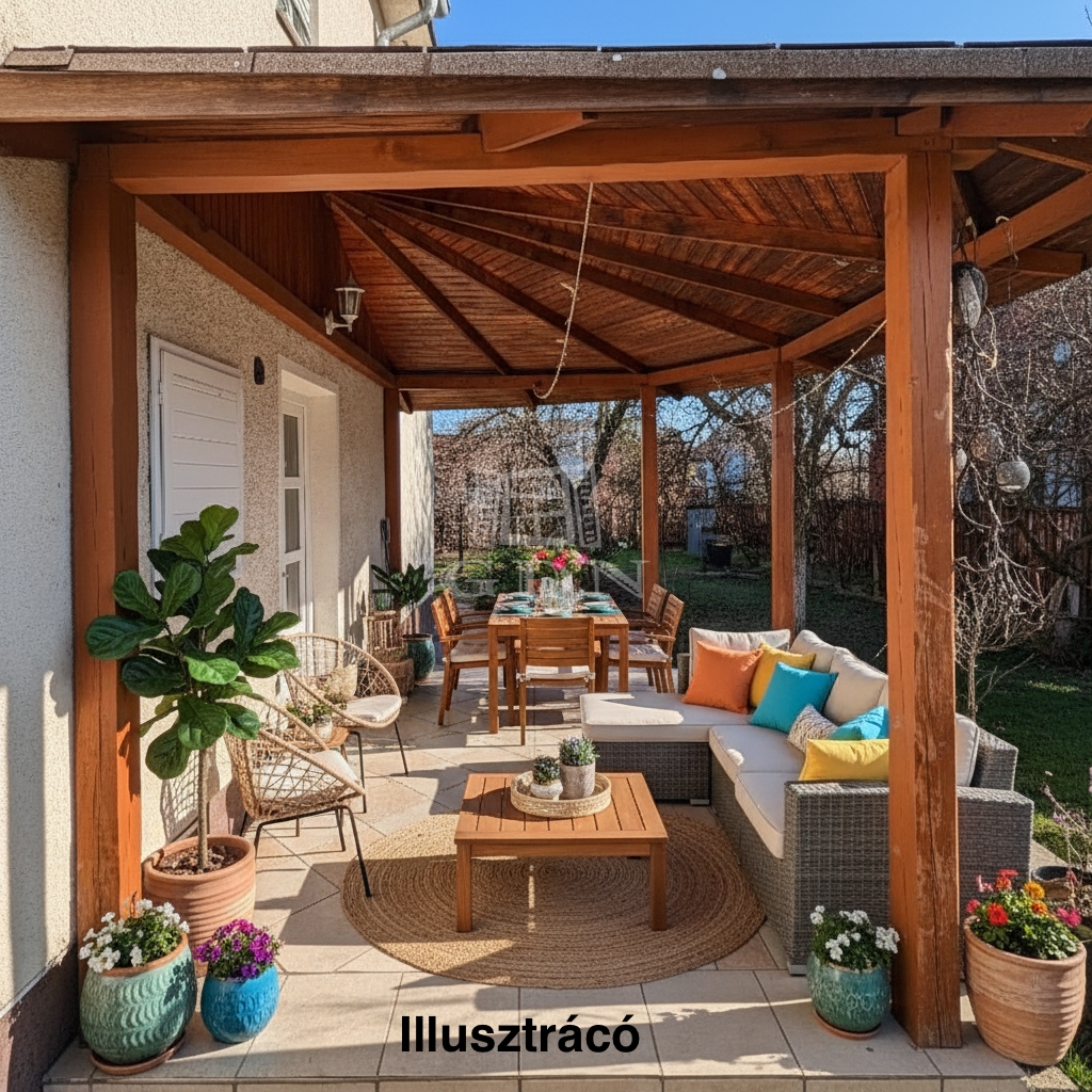• 10 m²-es, kertre néző fedett terasz