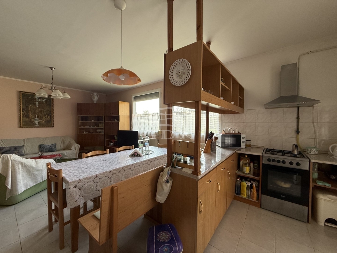 Elosztása: előszoba, konyha, nappali +1 hálószoba, wc mosdóval. Fűtése cserépkályha + elektromos fűtőpanel.