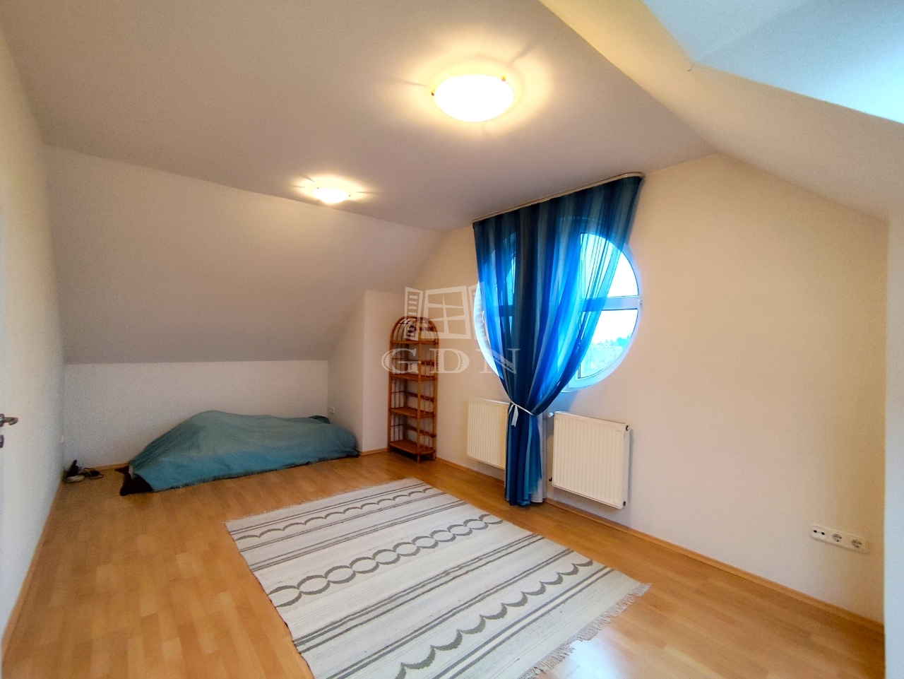 A tetőtéri szint igazi pihenőzóna. Jelenleg egybenyitott hálótérként funkcionál, de két külön gyerekszobává vagy háló + gyerekszoba kombinációvá is könnyen visszaalakítható.
