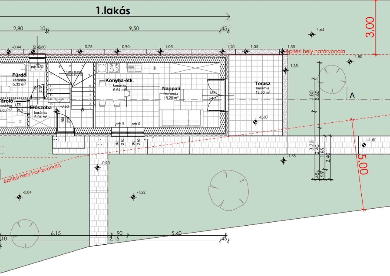Földszint: nettó 41 m2 + terasz
