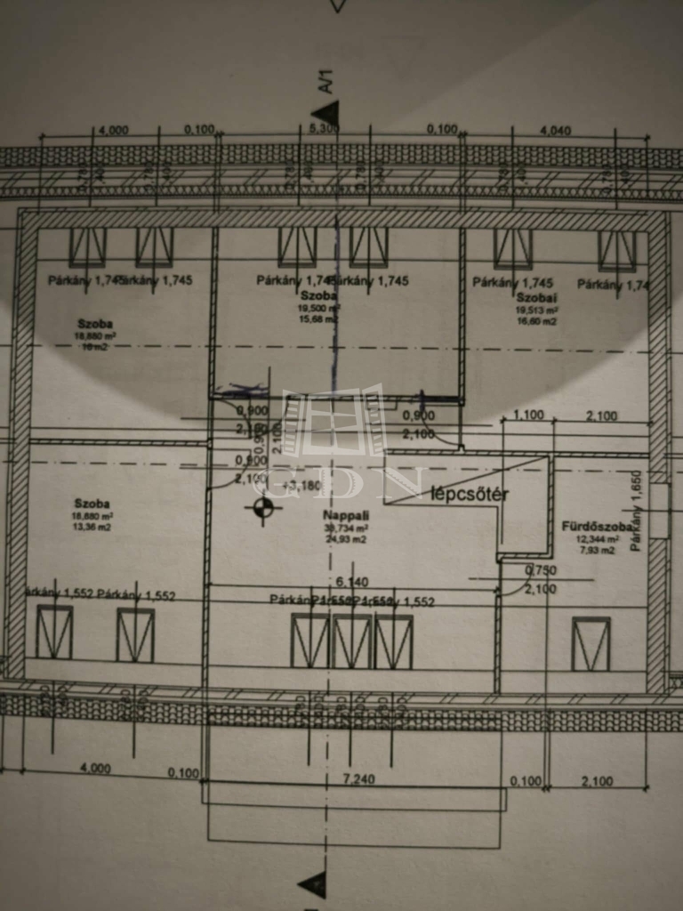 Emelet: 3 + 2 szoba, egy nappali, valamint egy kádas fürdőszoba WC-vel