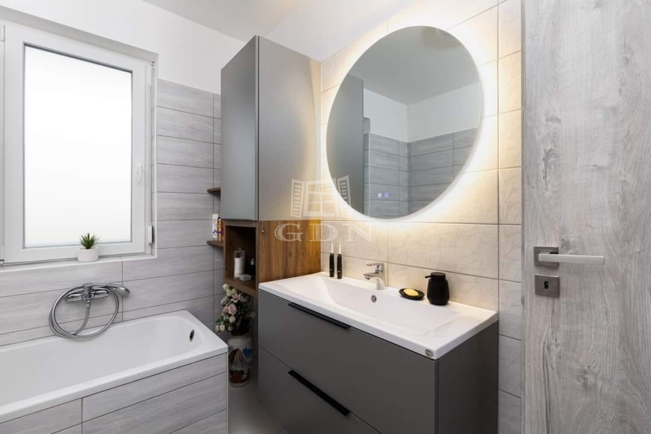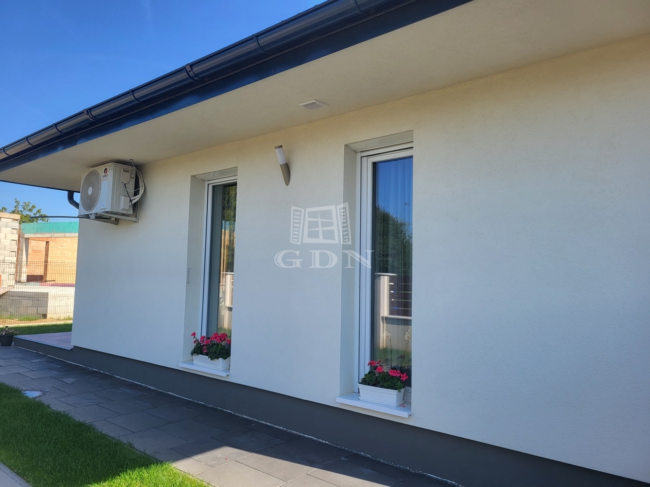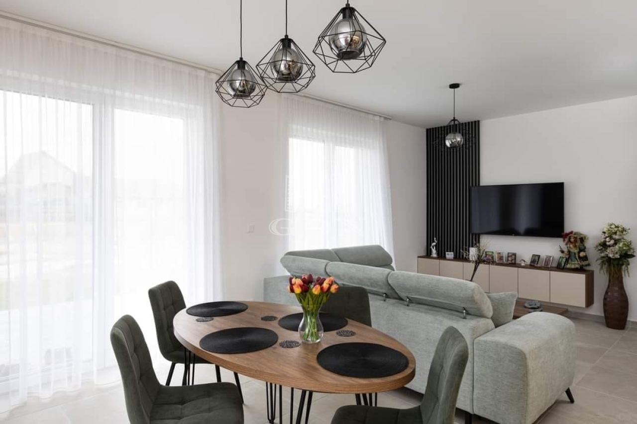 Szombathely dinamikusan fejlődő városrészén, az oladi dombon új építésű 86 m2-es ikerház eladó. A panorámás, csendes nyugodt környezetben, a jó elrendezésű ikerházak közös találkozási pontja csupán a garázsok fala. Magas műszaki tartalommal épült az ingatlan . Az épület teherhordó és válaszfalai Leier téglával kerültek kivitelezésre. Homlokzata 15 cm vastag EPS hőszigetelő rendszert kapott, a födémre 30 cm vastag szigetelés került. A tetőt Bramac cserép borítja. Műanyag nyílászárói fokozottan hang-és hőszigeteltek, alumínium redőnyökkel, szúnyoghálókkal felszereltek. Elektromos kialakítás: 1x32 Amper elektromos kapacitással + 1X32 Amper H tarifával. Fűtés és meleg vízellátás, a fűtést biztosító háztartási helyiségben elhelyezett 10 Kw Gree Versati 3 hőszivattyúval, padlófűtéses rendszerrel készült, szabályozható termosztáttal. A Gree Versati hőszivattyú biztosítja a meleg vizet is egy 200 literes hőtárolós víztartállyal. Nappalijában hűtő-fűtő klímát szereltek. A ház nagy részében neves belsőépítészeti stúdió által tervezett és kivitelezett bútorokat építettek be. Konyhája rendkívül praktikus, minőségi háztartási gépekkel felszerelt. A berendezés a vételár részét képezi. Ha jó hangulatú, szépen bebútorozott, átgondolt ingatlanra vágyik, megtalálta. További információért, megtekintés céljából keresse irodánkat. Vegye igénybe szolgáltatásainkat ! Ha hitelre, állami támogatásra van szüksége, abban is segítünk.