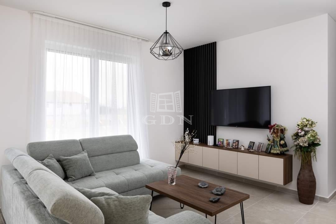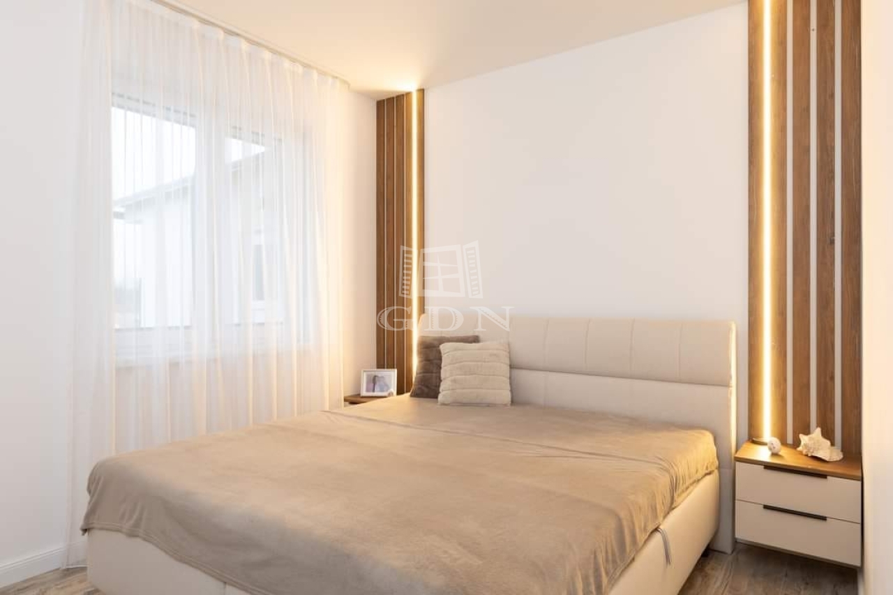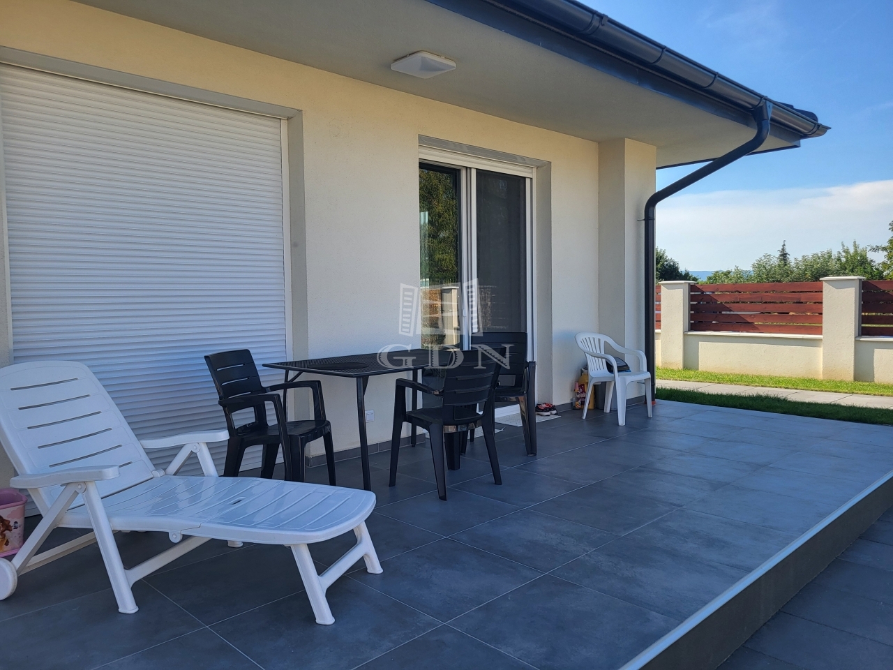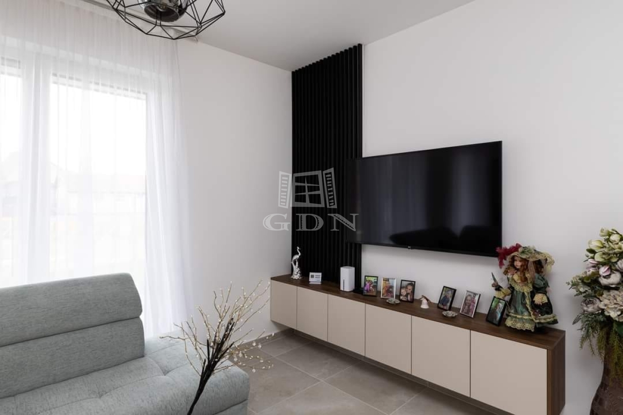 Szombathely dinamikusan fejlődő városrészén, az oladi dombon új építésű 86 m2-es ikerház eladó. A panorámás, csendes nyugodt környezetben, a jó elrendezésű ikerházak közös találkozási pontja csupán a garázsok fala. Magas műszaki tartalommal épült az ingatlan . Az épület teherhordó és válaszfalai Leier téglával kerültek kivitelezésre. Homlokzata 15 cm vastag EPS hőszigetelő rendszert kapott, a födémre 30 cm vastag szigetelés került. A tetőt Bramac cserép borítja. Műanyag nyílászárói fokozottan hang-és hőszigeteltek, alumínium redőnyökkel, szúnyoghálókkal felszereltek. Elektromos kialakítás: 1x32 Amper elektromos kapacitással + 1X32 Amper H tarifával. Fűtés és meleg vízellátás, a fűtést biztosító háztartási helyiségben elhelyezett 10 Kw Gree Versati 3 hőszivattyúval, padlófűtéses rendszerrel készült, szabályozható termosztáttal. A Gree Versati hőszivattyú biztosítja a meleg vizet is egy 200 literes hőtárolós víztartállyal. Nappalijában hűtő-fűtő klímát szereltek. A ház nagy részében neves belsőépítészeti stúdió által tervezett és kivitelezett bútorokat építettek be. Konyhája rendkívül praktikus, minőségi háztartási gépekkel felszerelt. A berendezés a vételár részét képezi. Ha jó hangulatú, szépen bebútorozott, átgondolt ingatlanra vágyik, megtalálta. További információért, megtekintés céljából keresse irodánkat. Vegye igénybe szolgáltatásainkat ! Ha hitelre, állami támogatásra van szüksége, abban is segítünk.