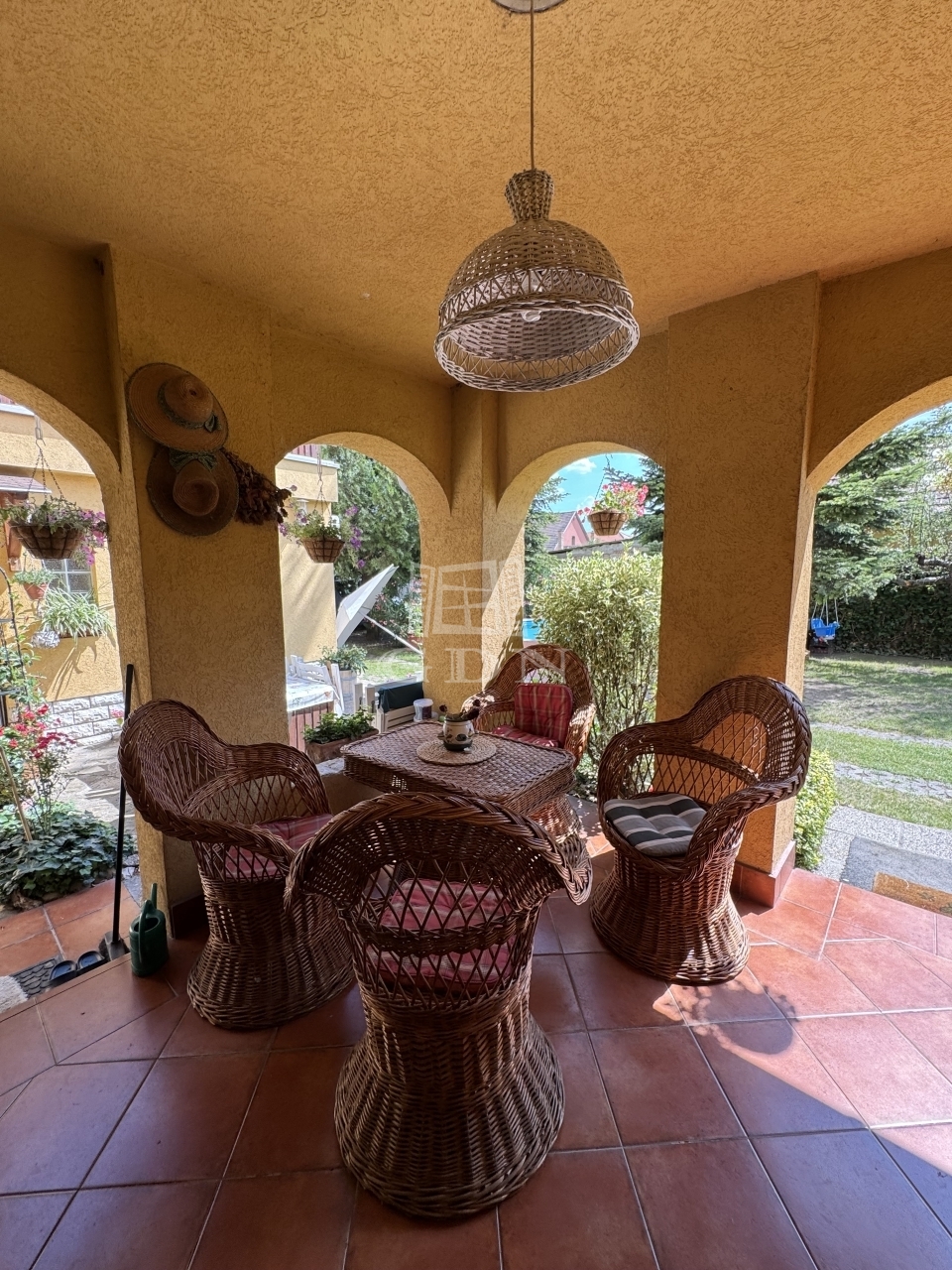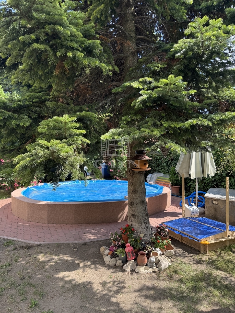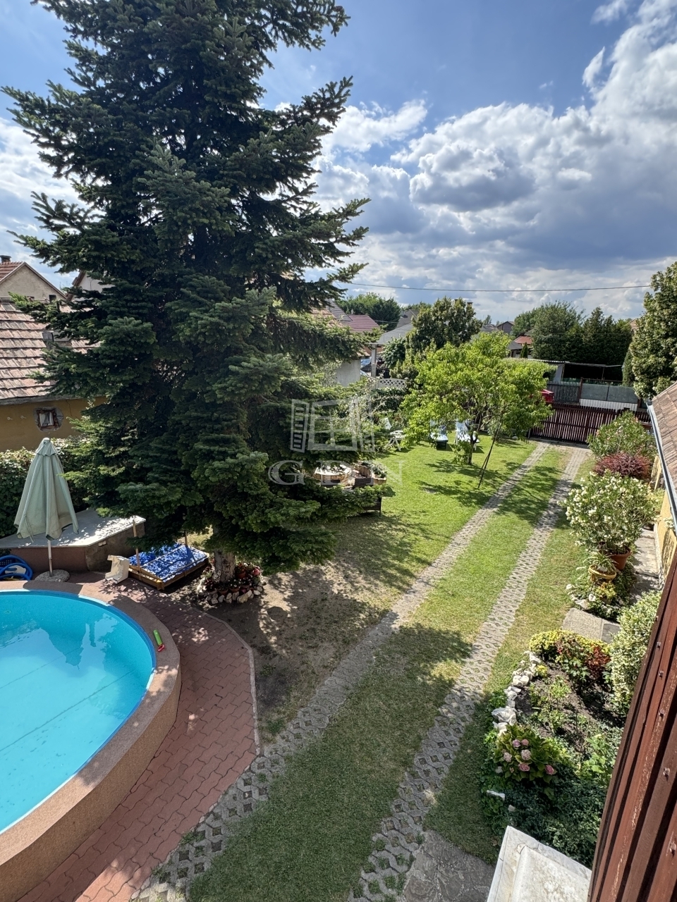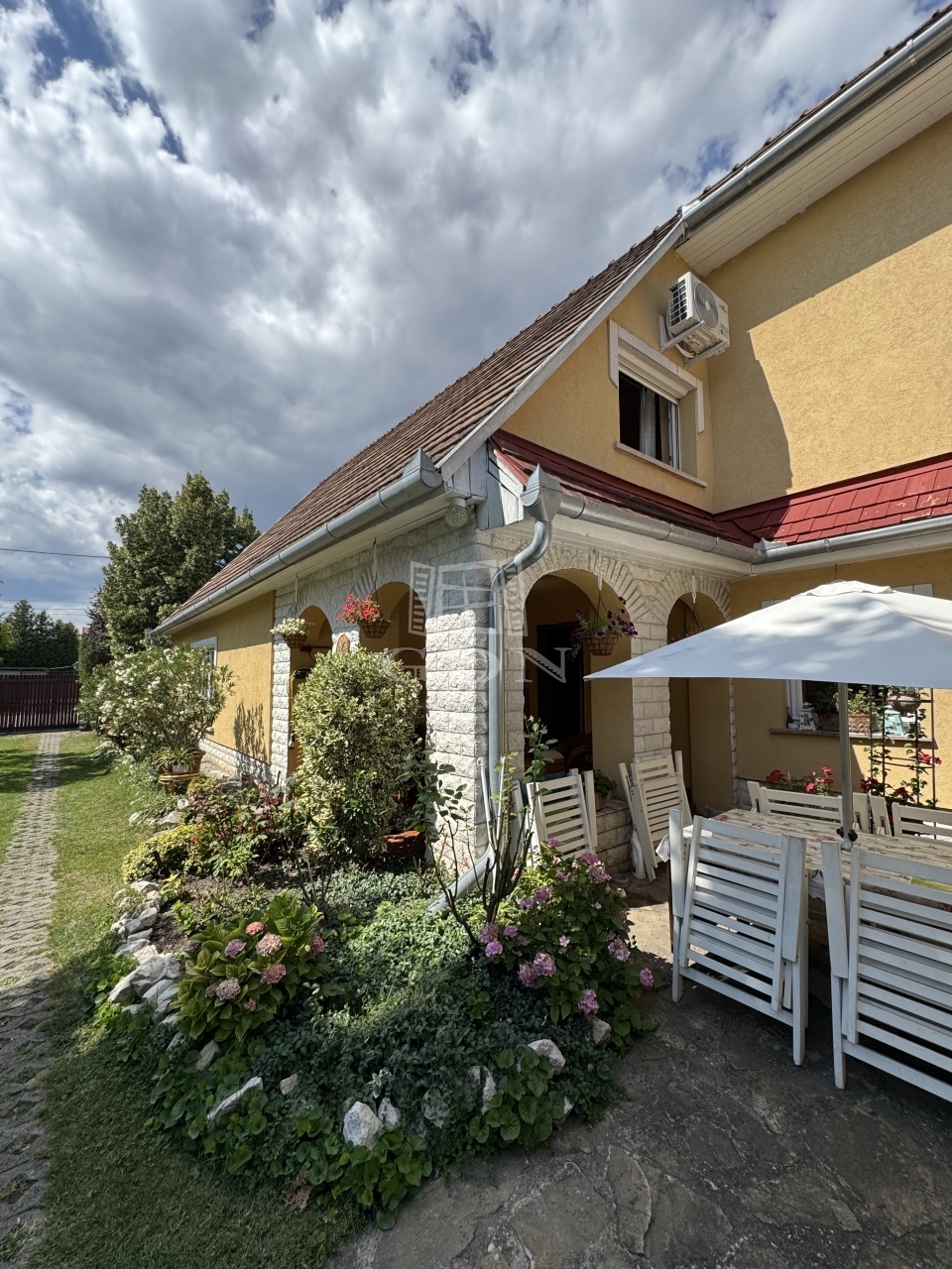 A gyönyörűen gondozott, parkosított 587 nm-es kertben, ami kiváló helyszín a kikapcsolódásra és családi összejövetelekre, 2 db teljesen külön bejáratú ház található.