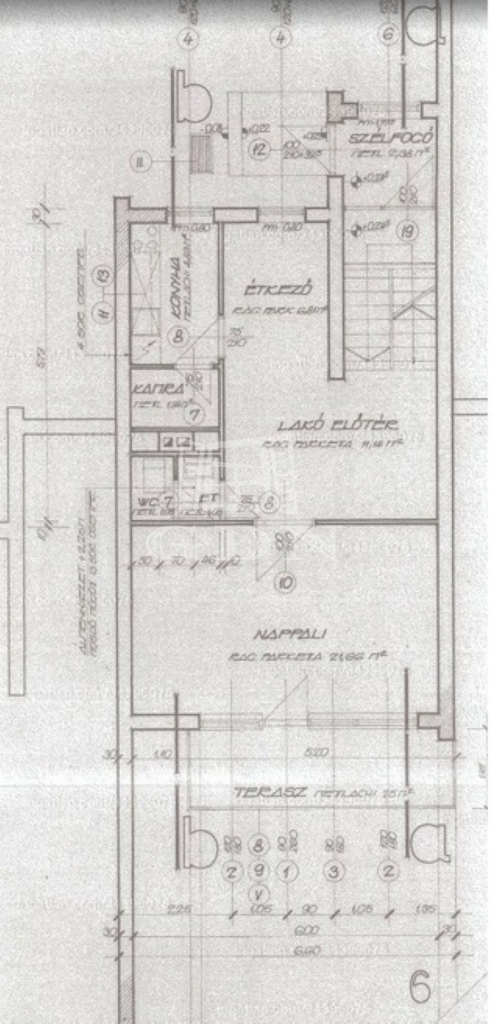 • Első emelet: amerikai nappali-konyha-étkező, WC, háztartási helyiség, utcafronti erkély