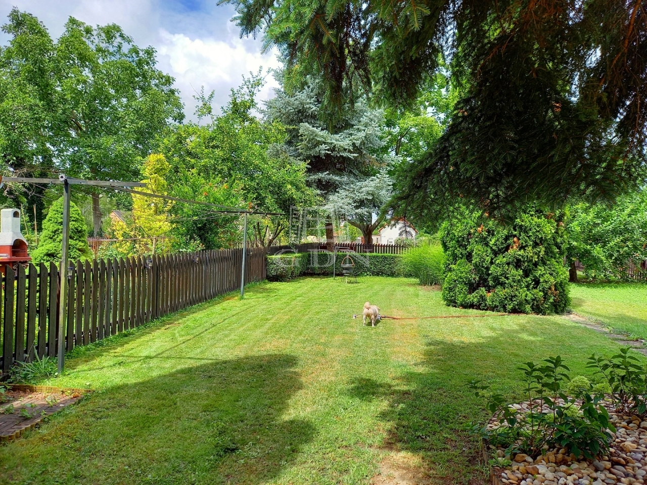 • Gondozott, 144m2-es kert, saját fúrt kúttal, elektromos szivattyúval öntözve