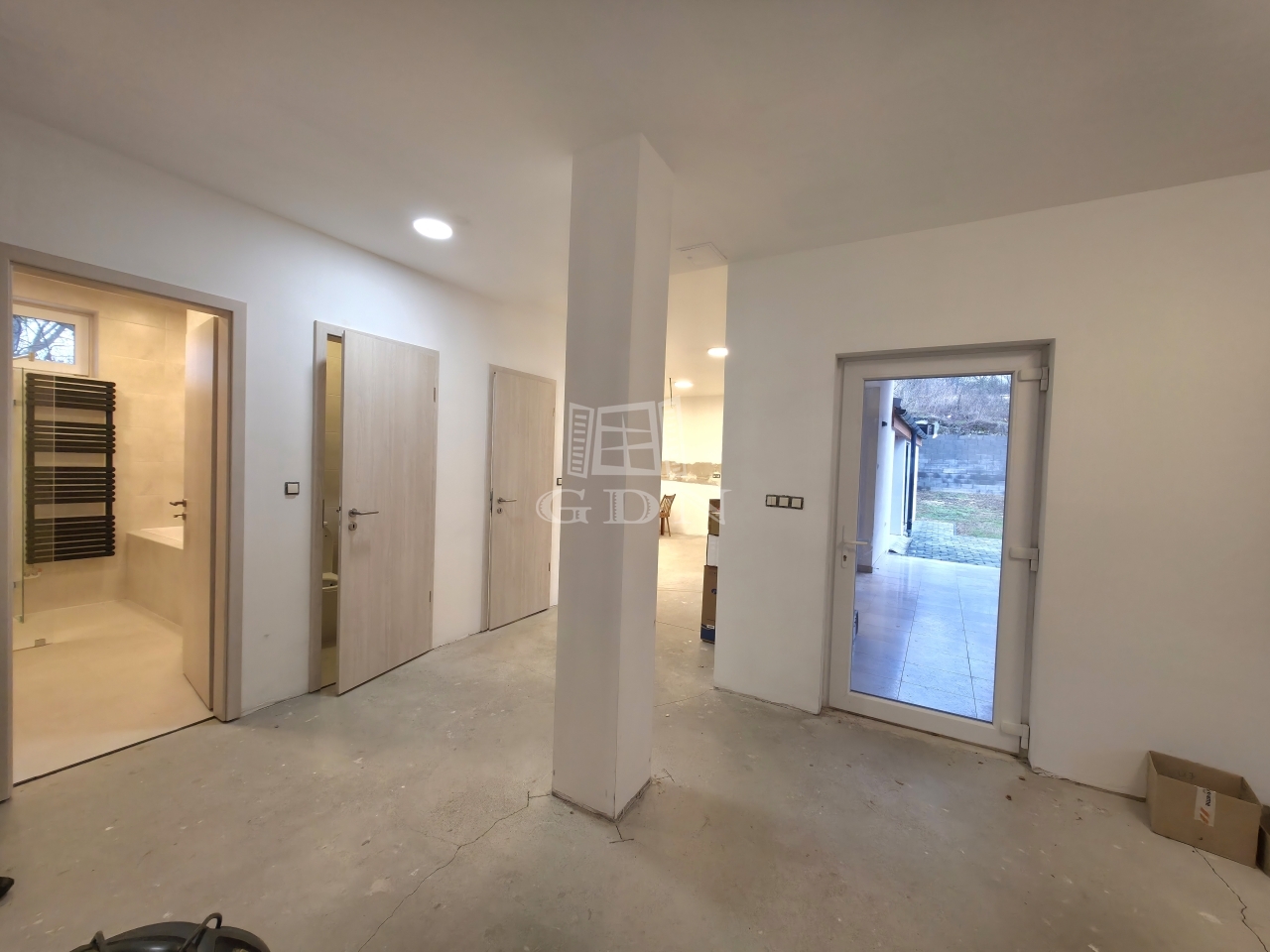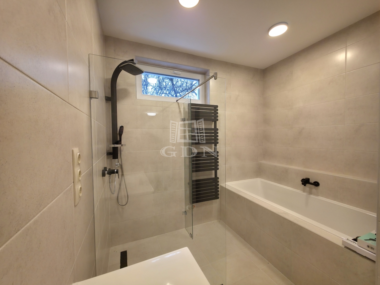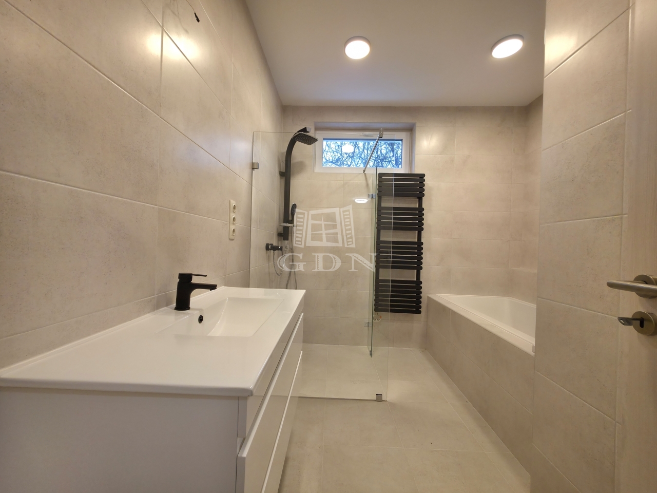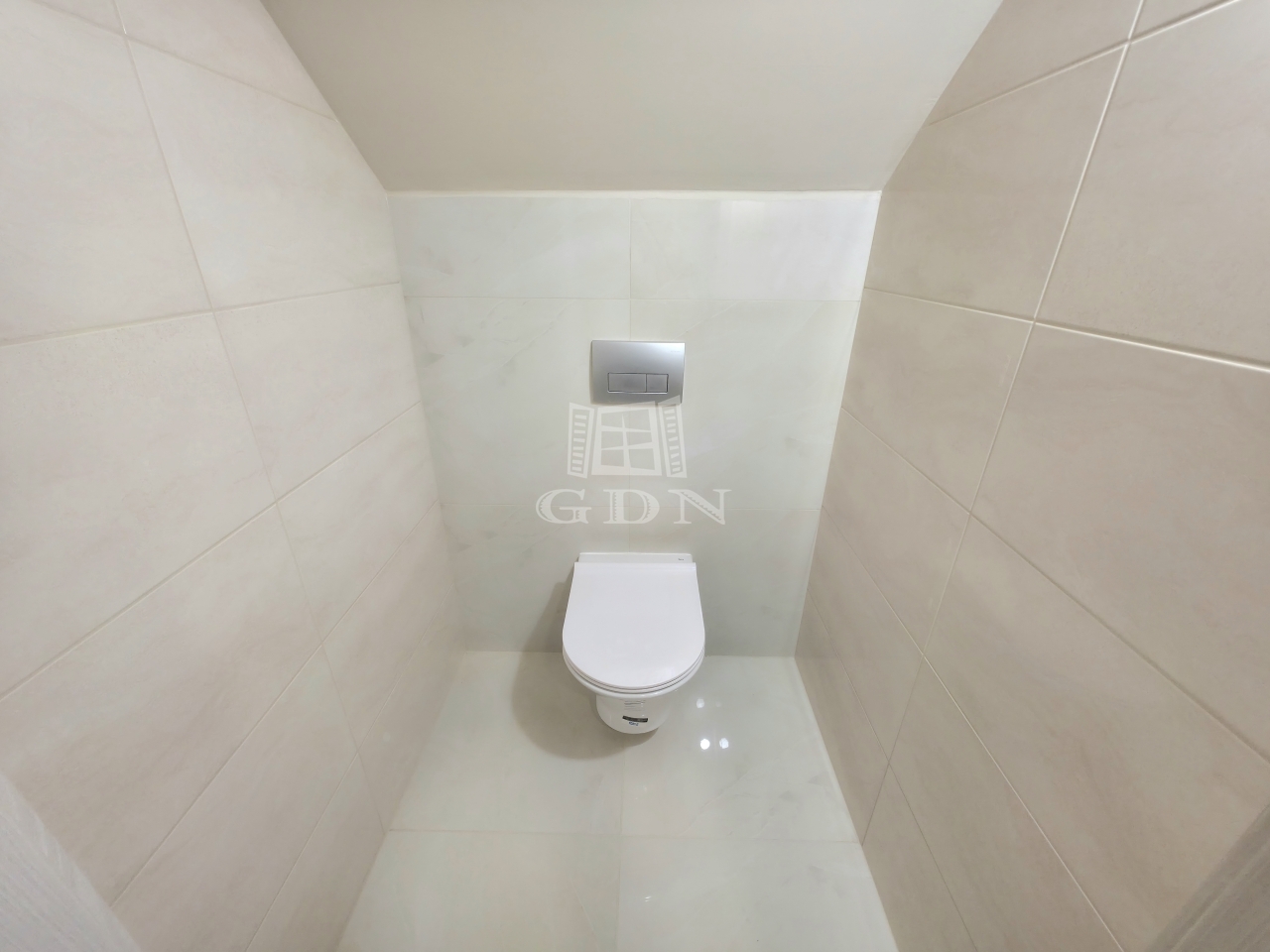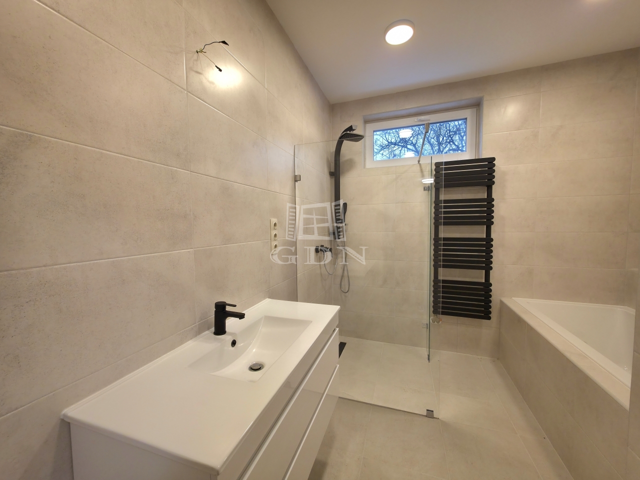 A ház felújítása során kiemelt figyelem jutott a tartósságra: korszerű nyílászárók, minőségi homlokzati szigetelés, tömör fa lépcső, prémium burkolatok és igény szerint választható felületek várják új tulajdonosát. A tágas terasz természetes kőburkolata a kerttel összhangban teremt pihenésre hívó hangulatot.