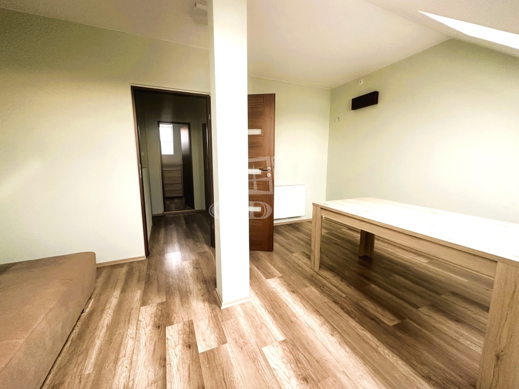 A felső szinten egy méretes szoba, egy félszoba és egy tágas fürdőszoba kapott teret.
