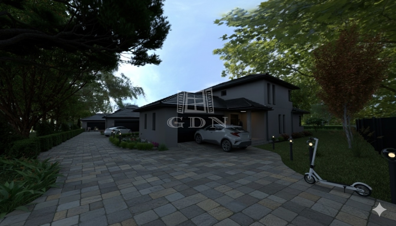 A ház csendes, családi házas környezetben található, egy nyugodt zsákutcában. Kiváló infrastruktúra jellemzi: iskola, óvoda, bevásárlási lehetőségek és az autópálya könnyen elérhetők, miközben zöld, nyugodt környezetet biztosít.